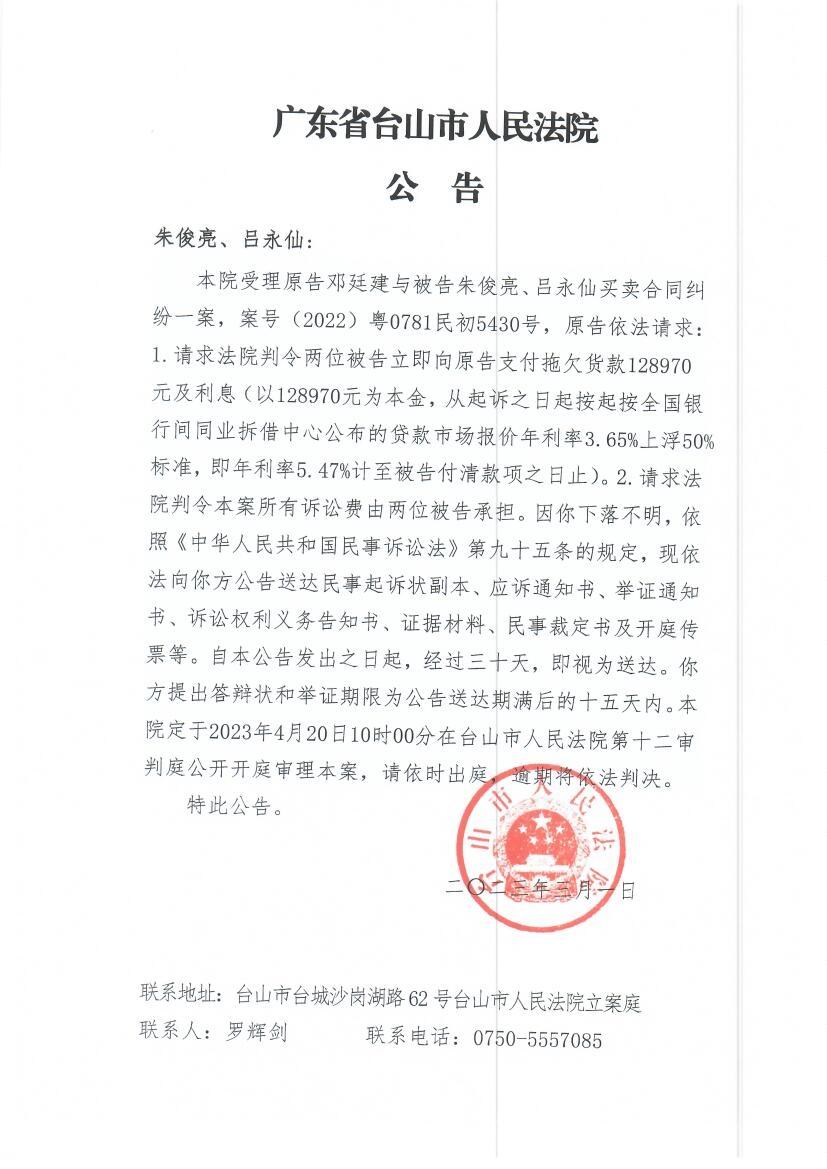 来源: 台山市人民法院 时间:2023-03-01 11:15