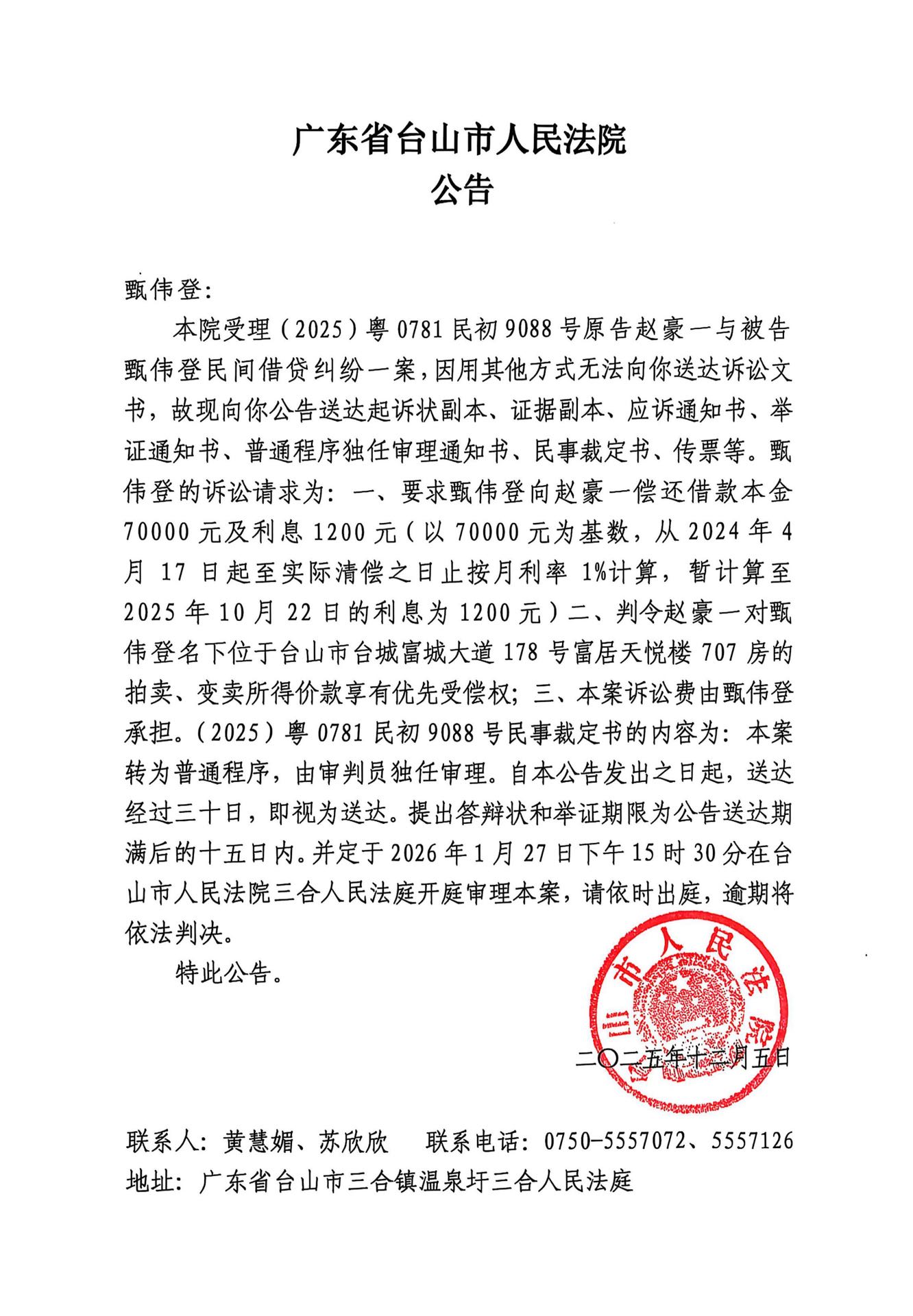 来源: 台山市人民法院 时间:2025-12-05 09:41