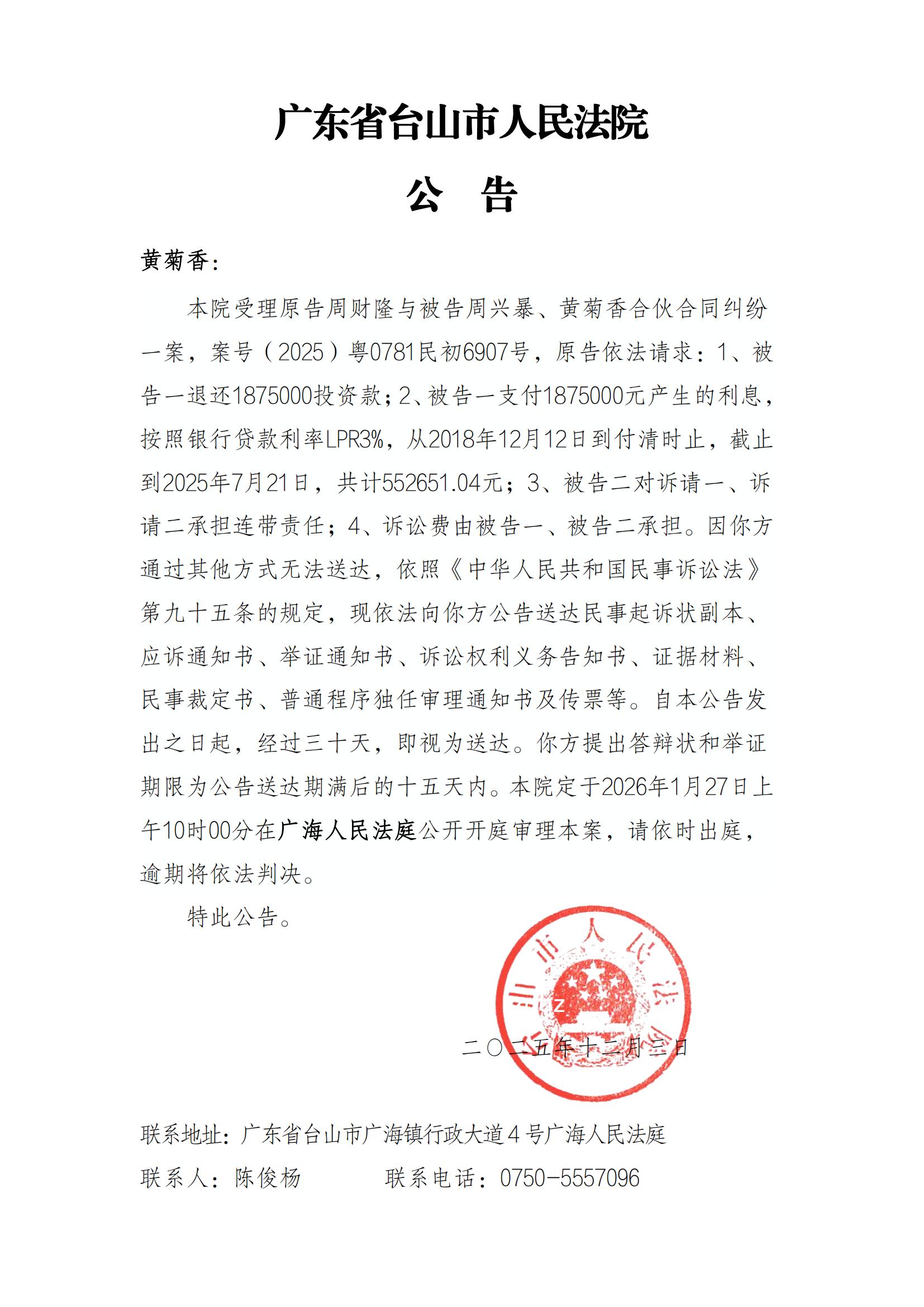 来源: 台山市人民法院 时间:2025-12-03 10:15