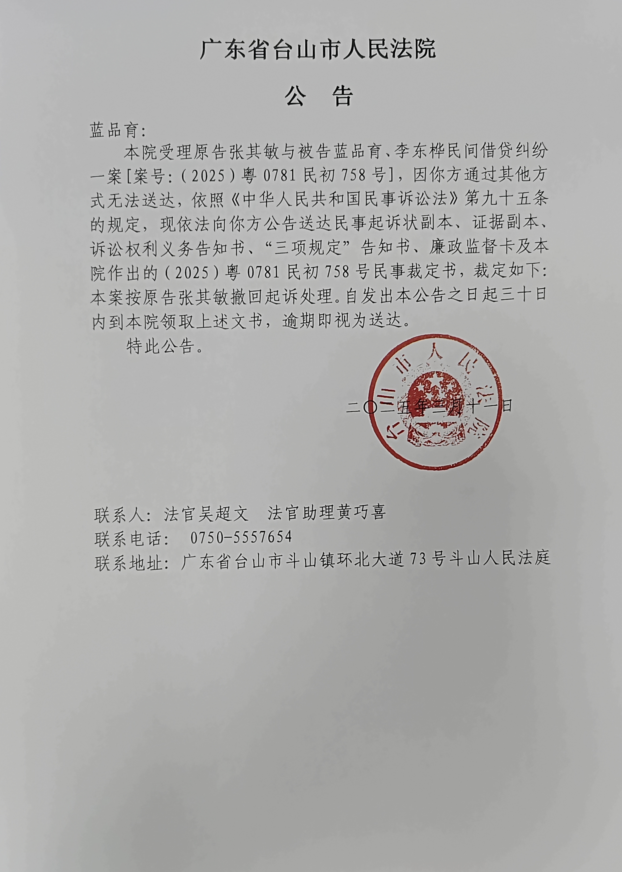 来源: 台山市人民法院 时间:2025-03-11 17:09