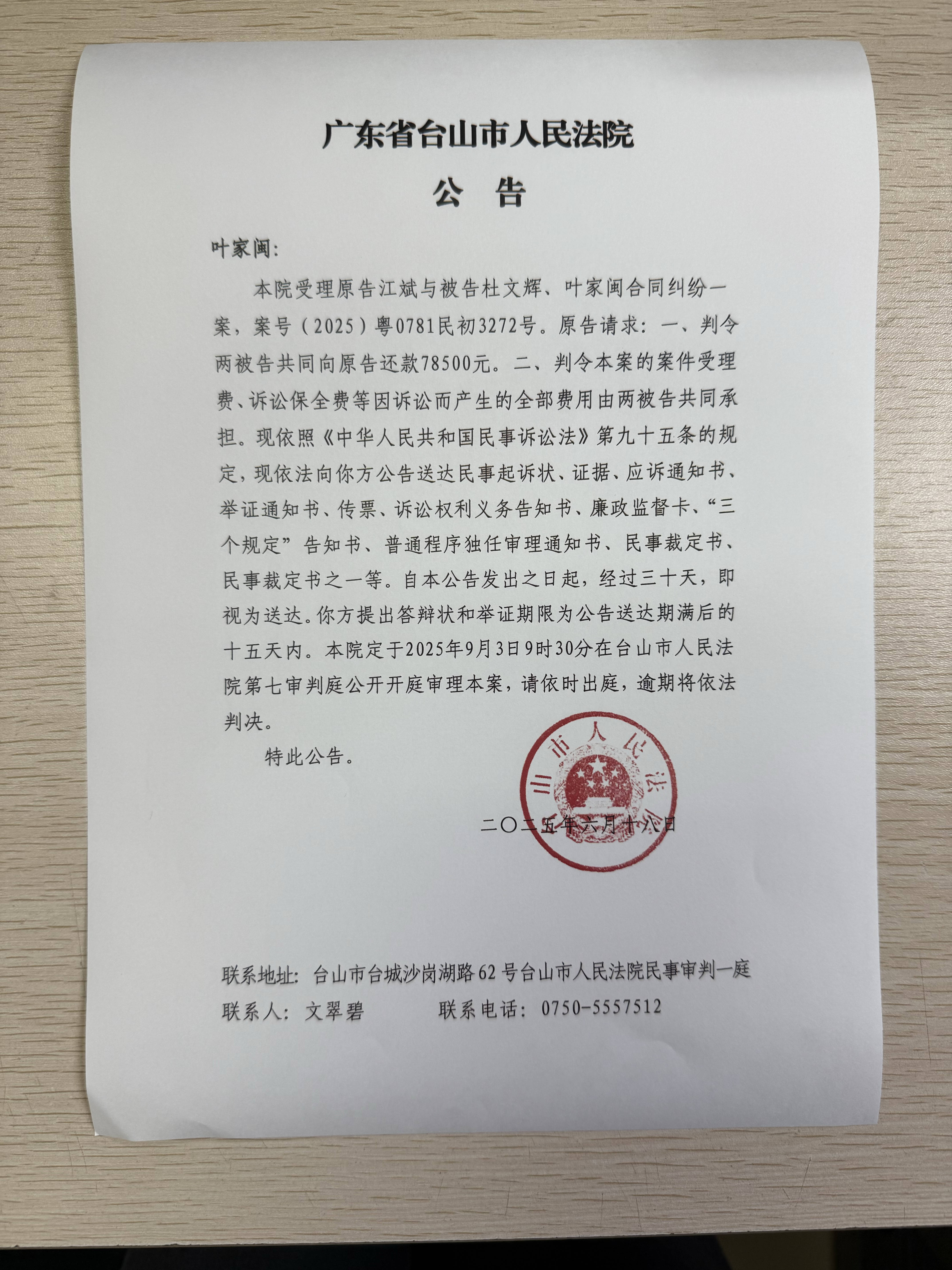 来源: 台山市人民法院 时间:2025-06-18 17:31