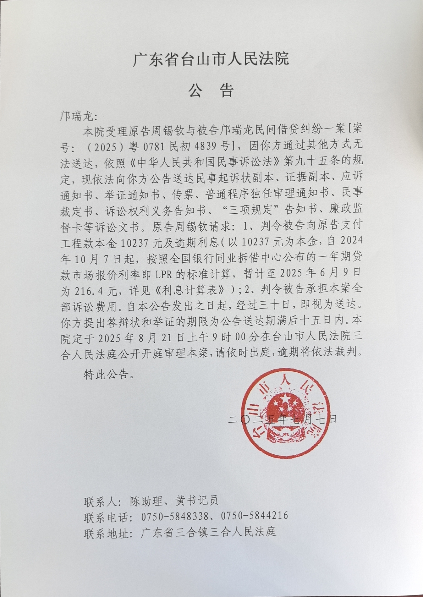 来源: 台山市人民法院 时间:2025-07-07 15:50