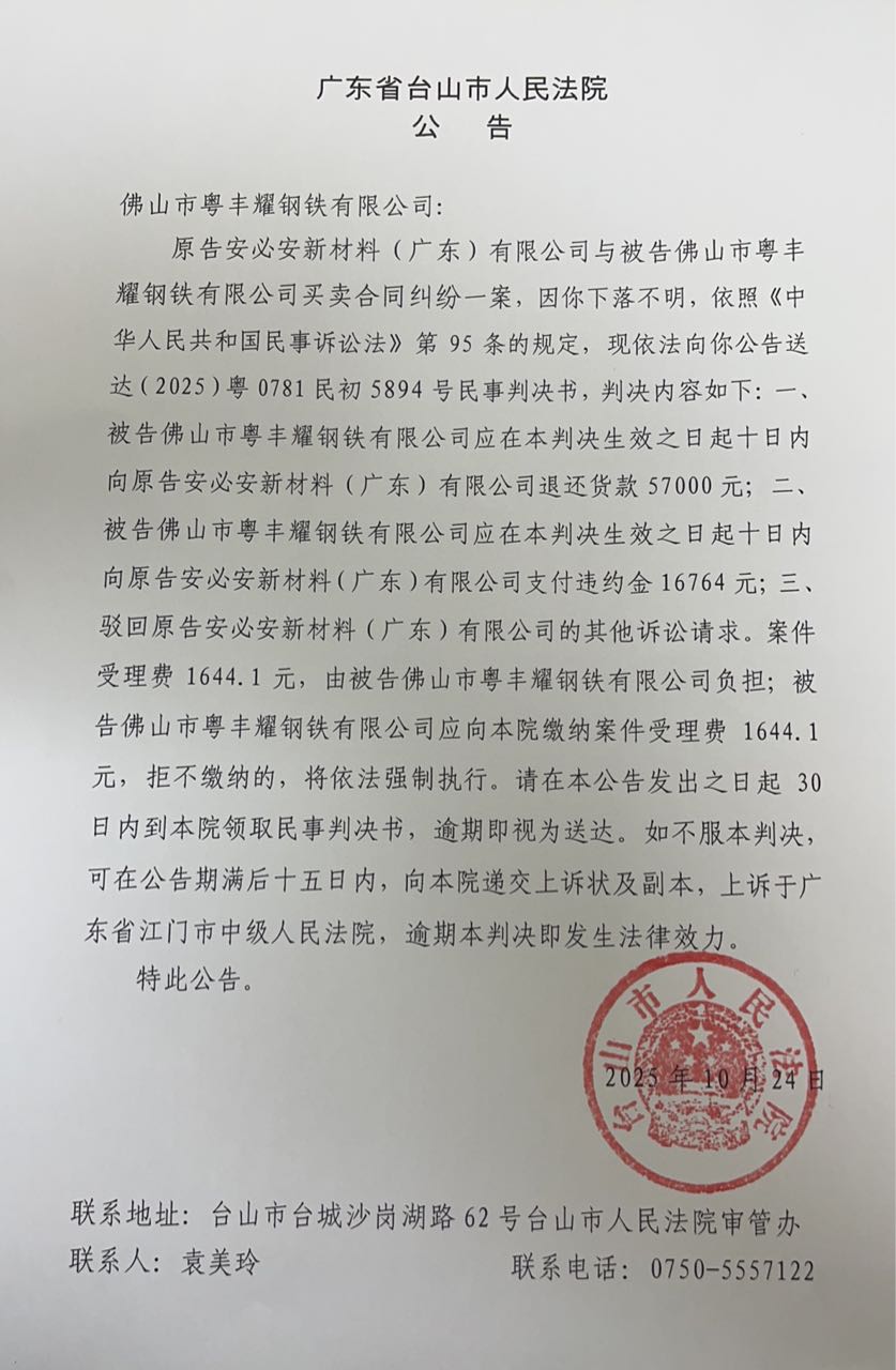 来源: 台山市人民法院 时间:2025-10-24 15:24
