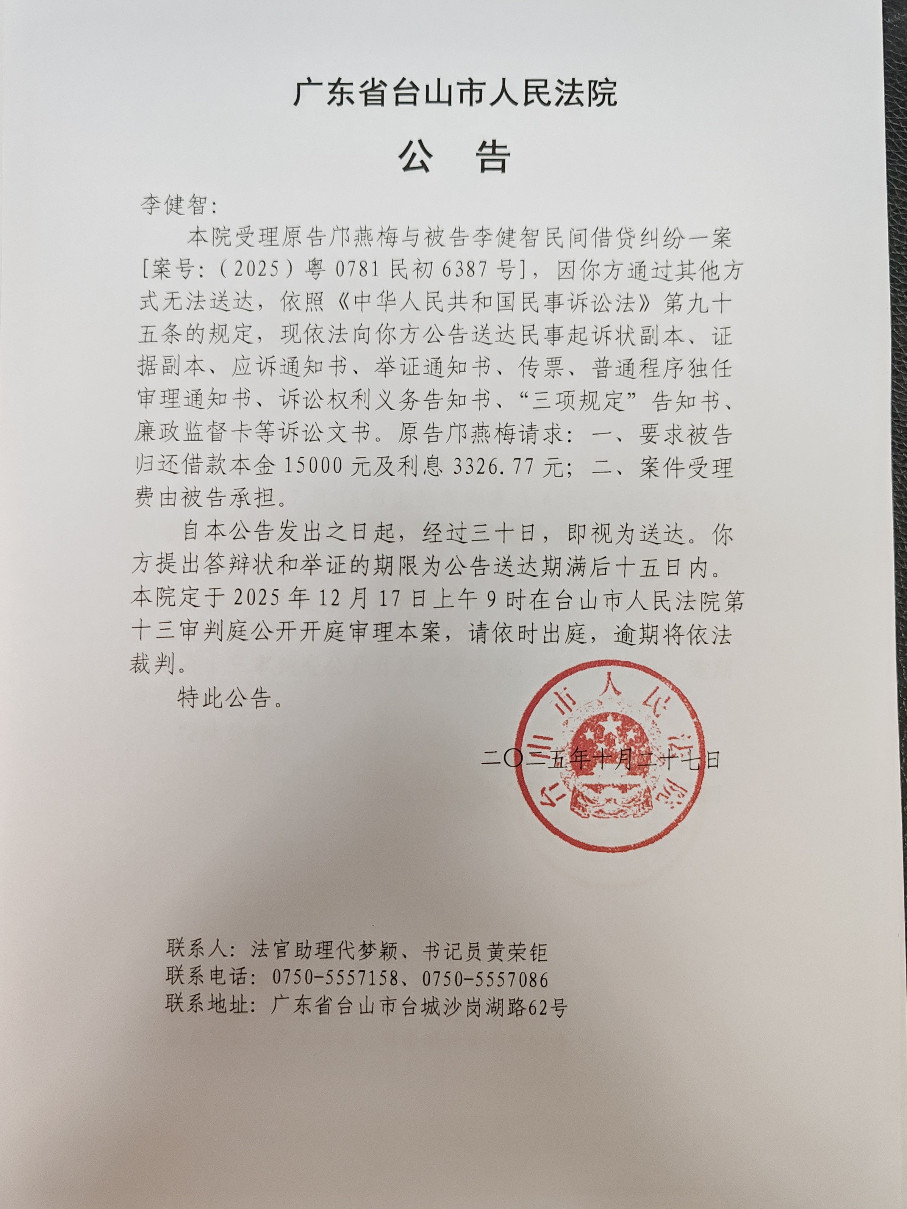 来源: 台山市人民法院 时间:2025-10-27 15:13