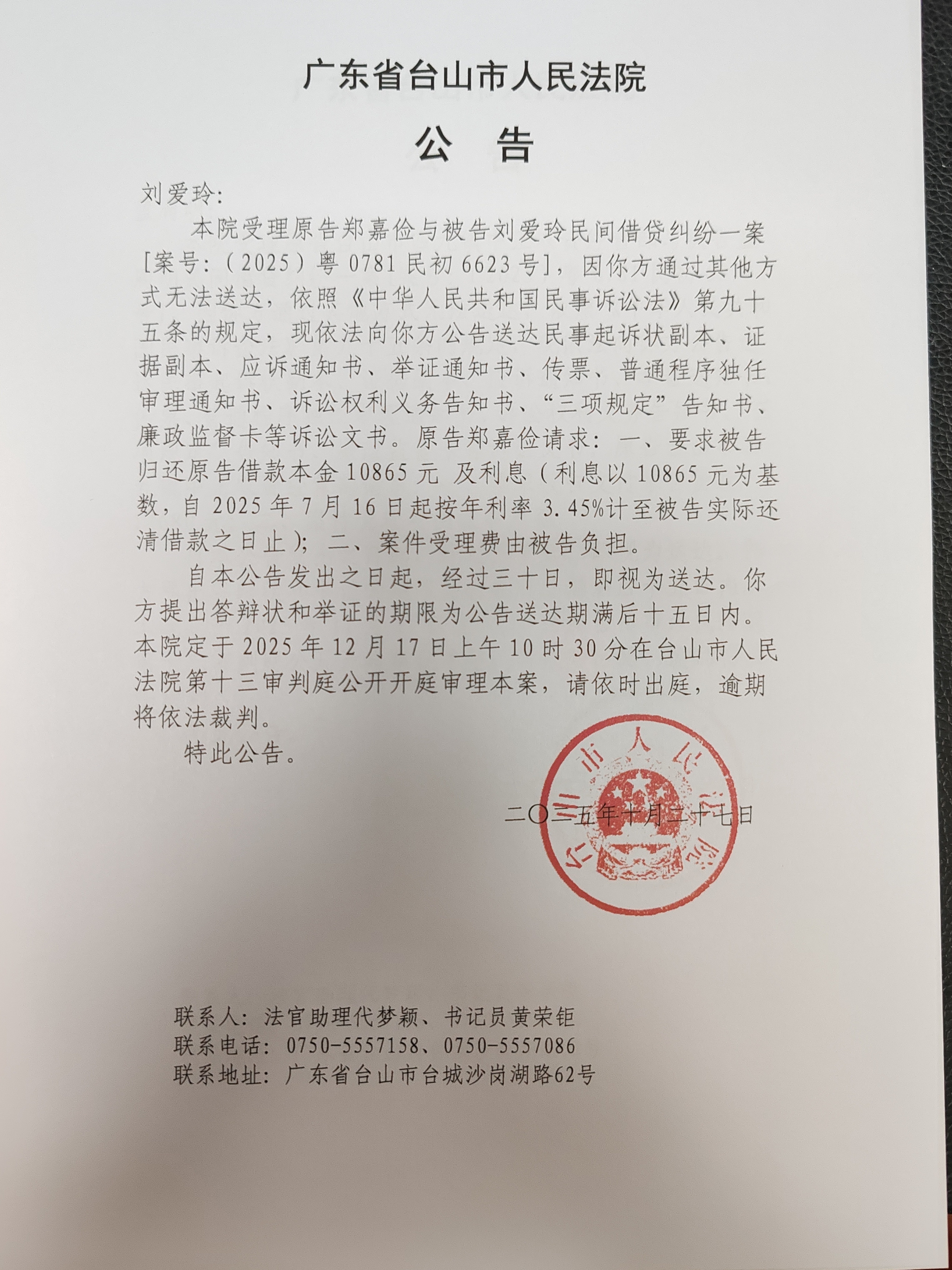 来源: 台山市人民法院 时间:2025-10-27 15:58