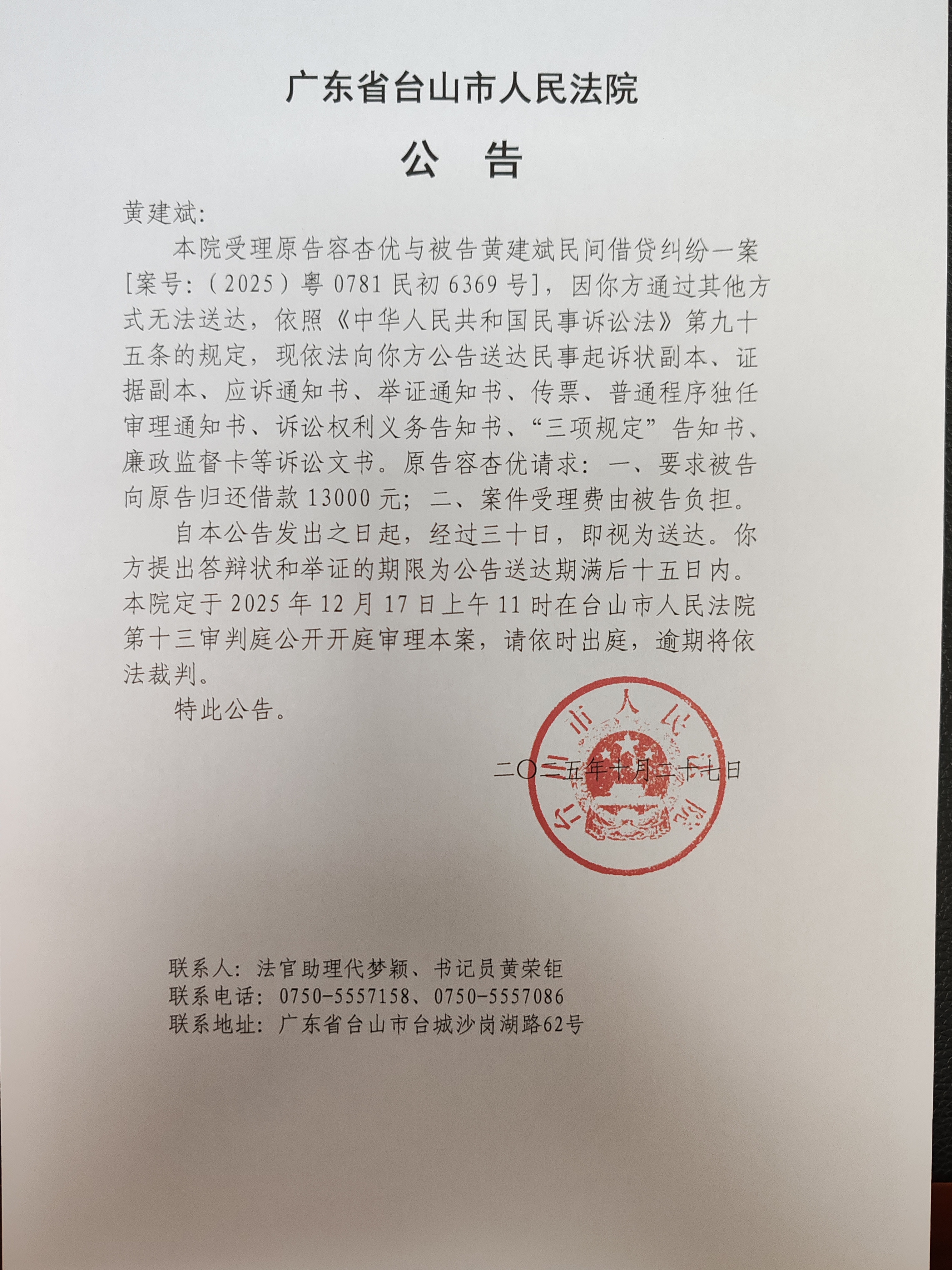 来源: 台山市人民法院 时间:2025-10-27 10:58