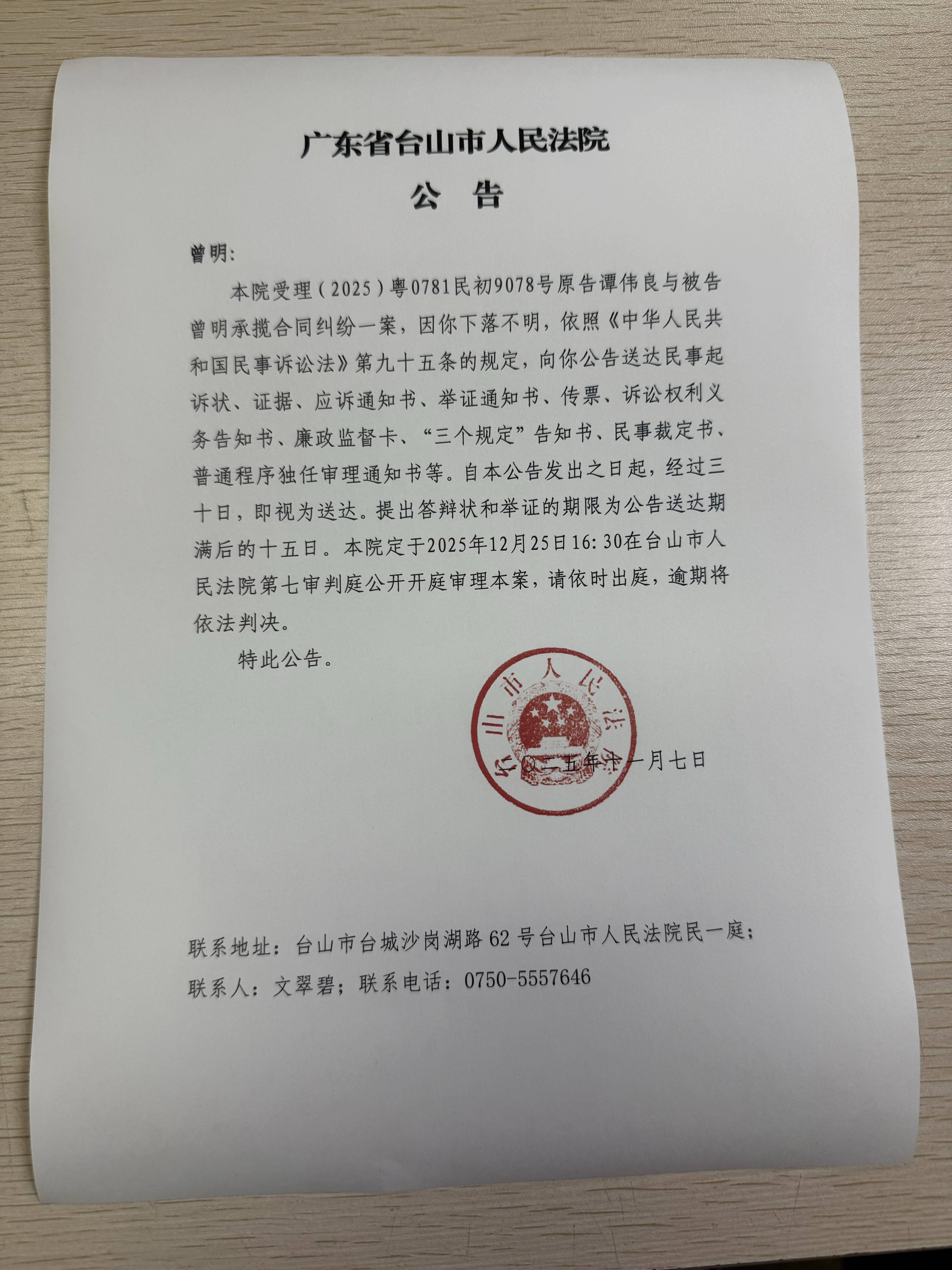 来源: 台山市人民法院 时间:2025-11-07 10:34
