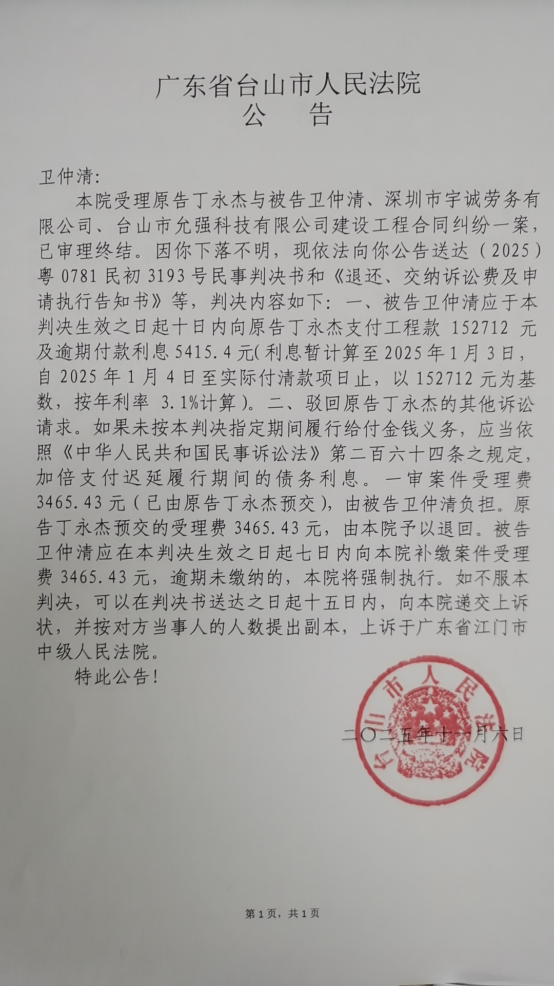 来源: 台山市人民法院 时间:2025-11-06 10:52
