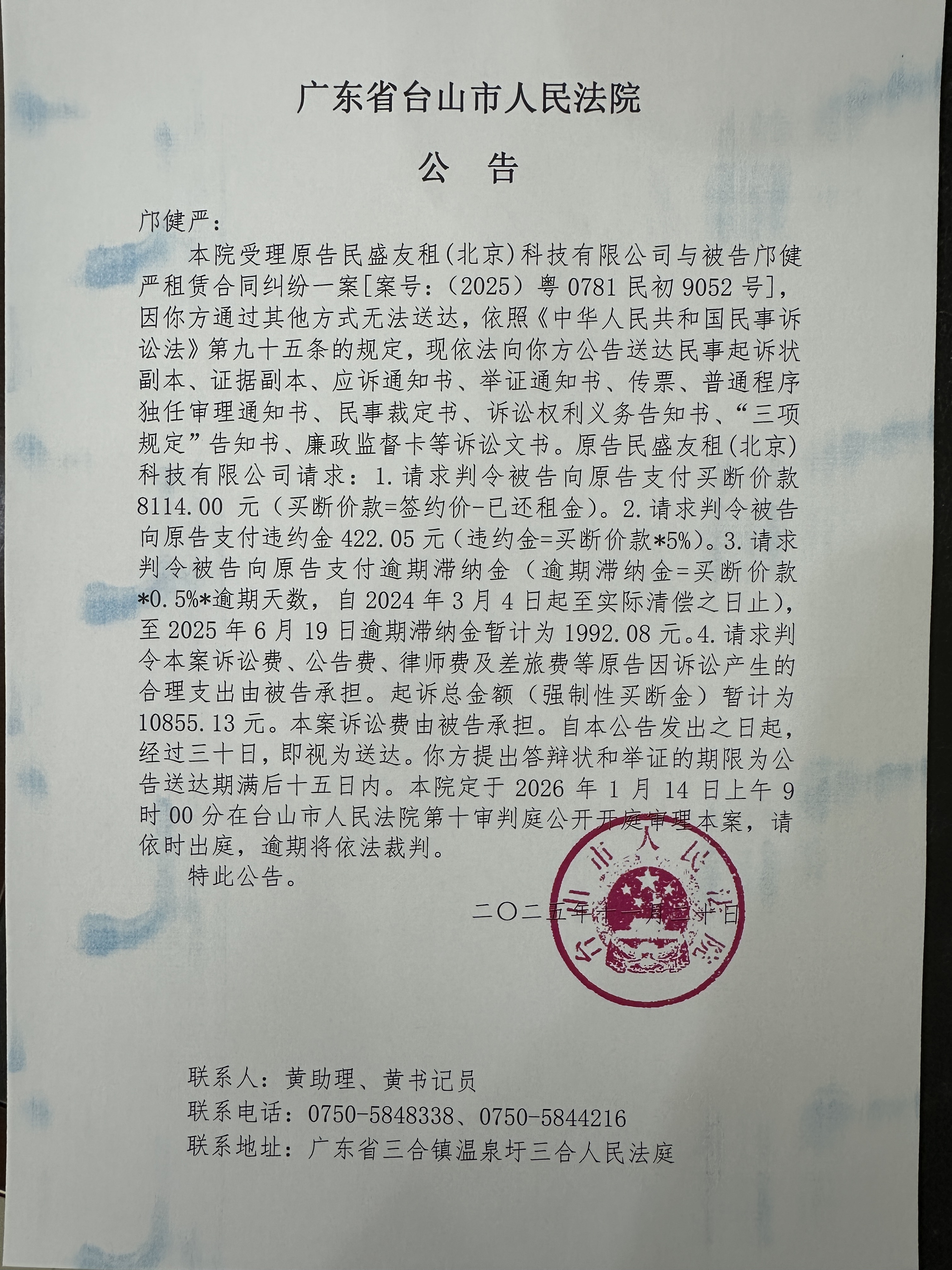 来源: 台山市人民法院 时间:2025-11-20 16:39