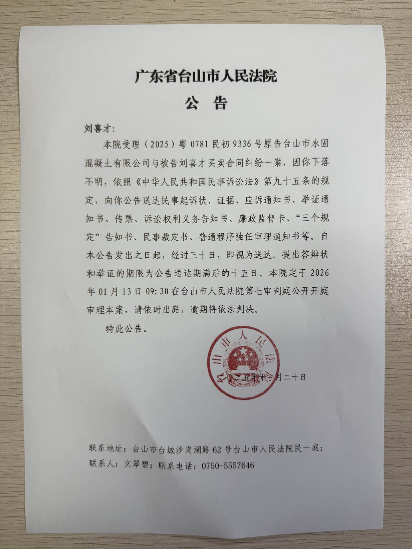 来源: 台山市人民法院 时间:2025-11-20 14:34