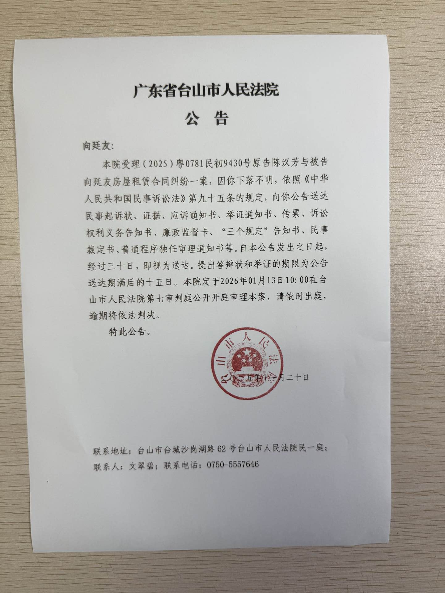 来源: 台山市人民法院 时间:2025-11-20 14:35