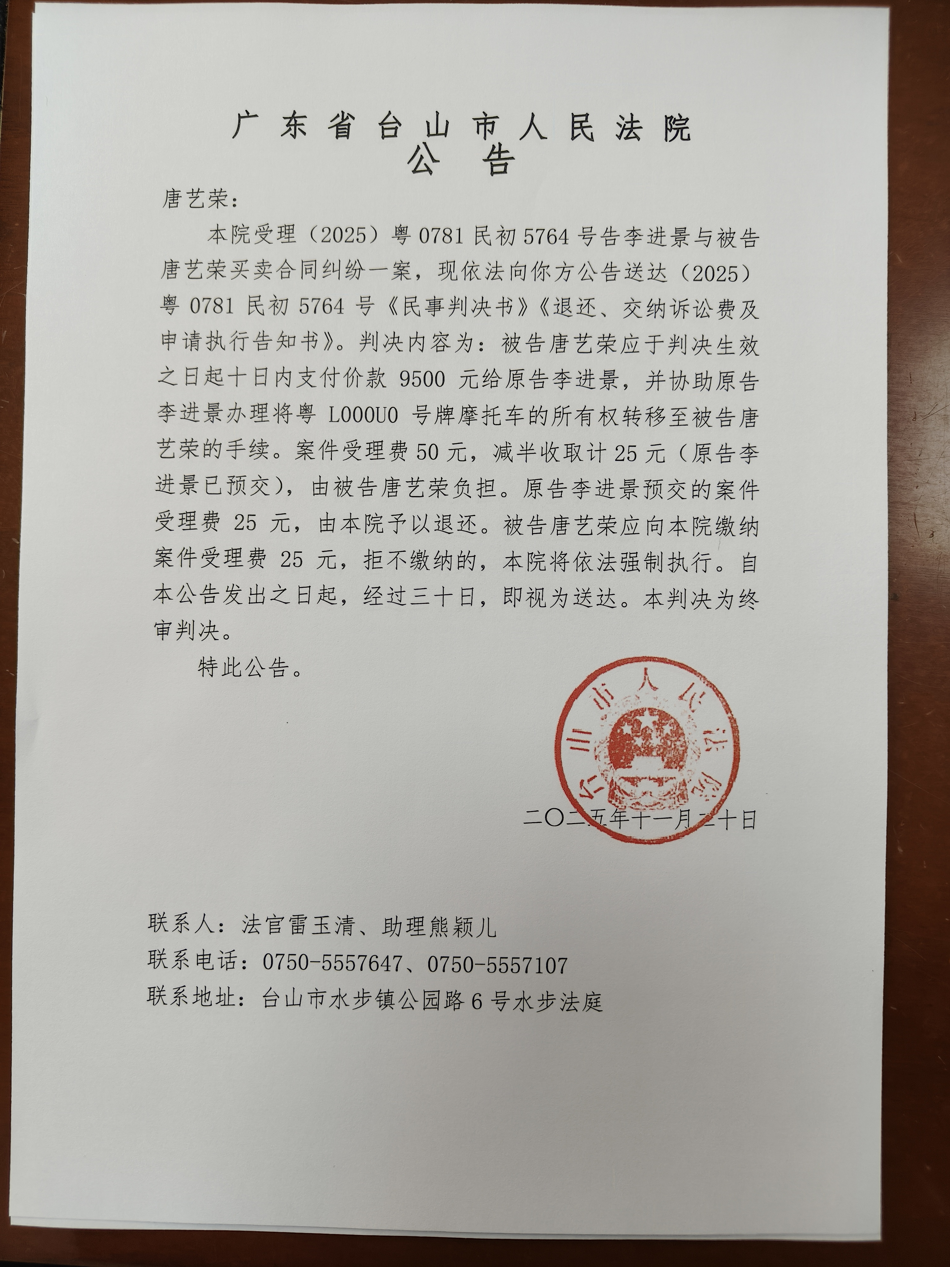 来源: 台山市人民法院 时间:2025-11-20 14:35