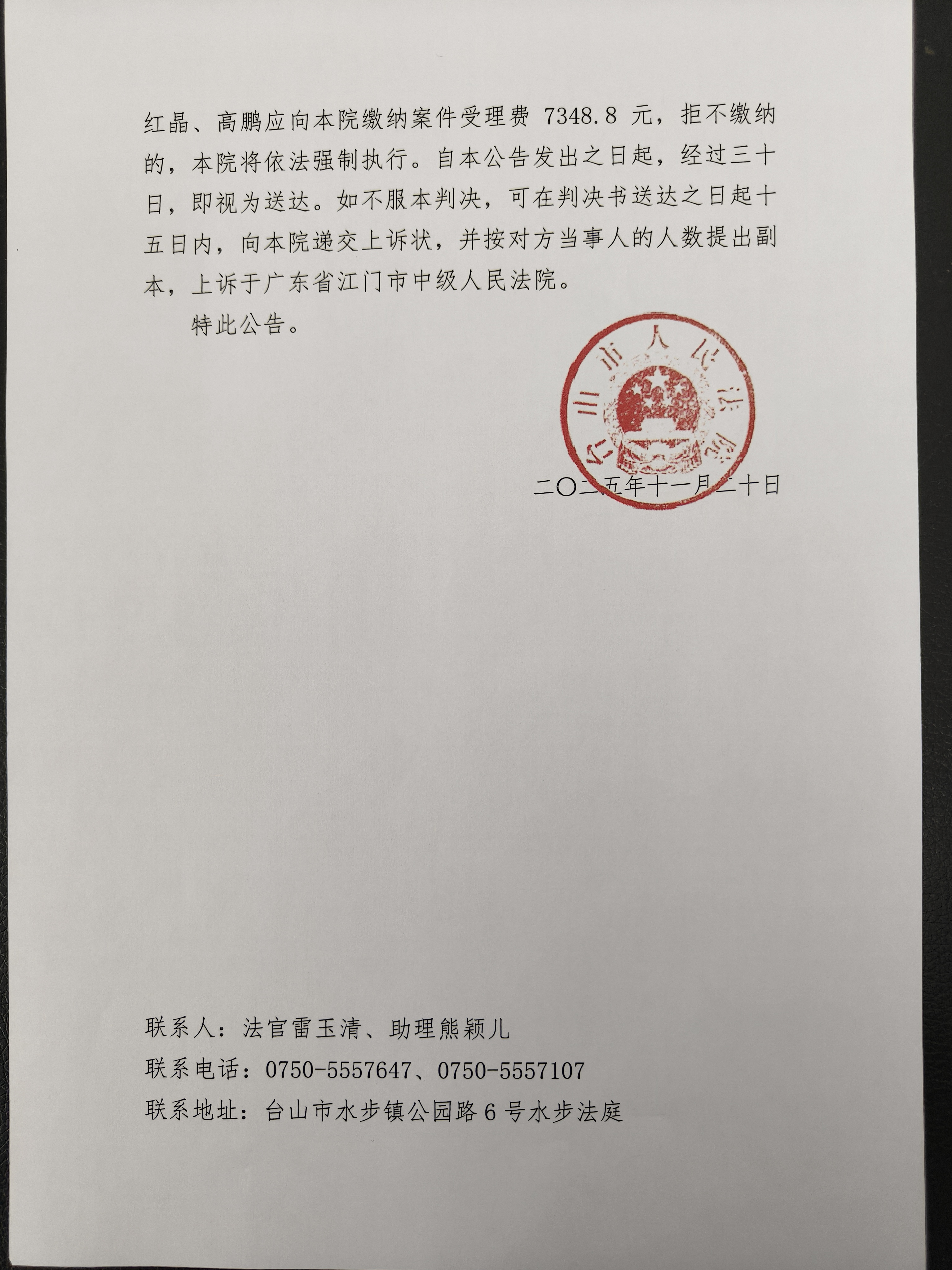 来源: 台山市人民法院 时间:2025-11-20 14:40