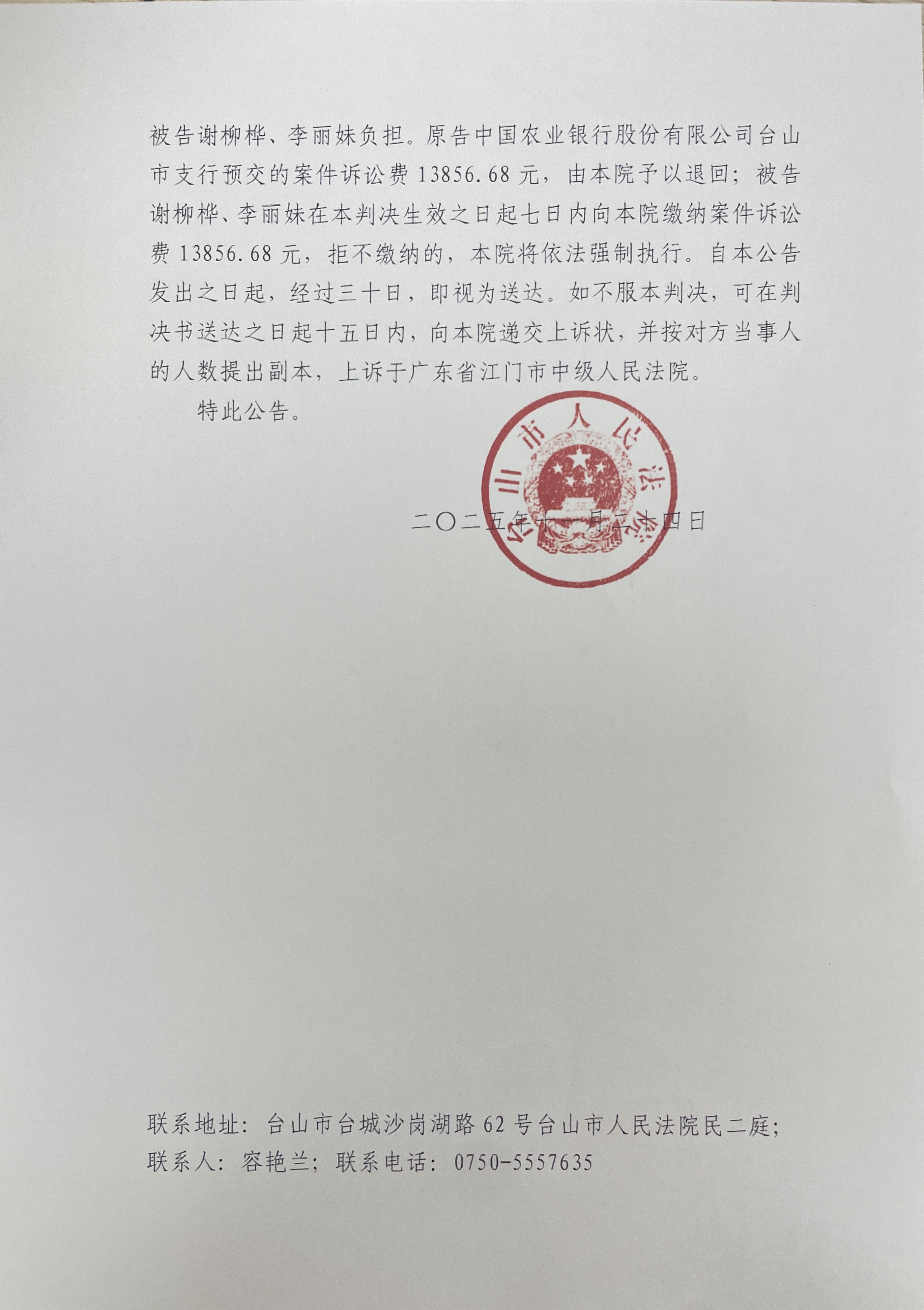 来源: 台山市人民法院 时间:2025-11-24 14:54
