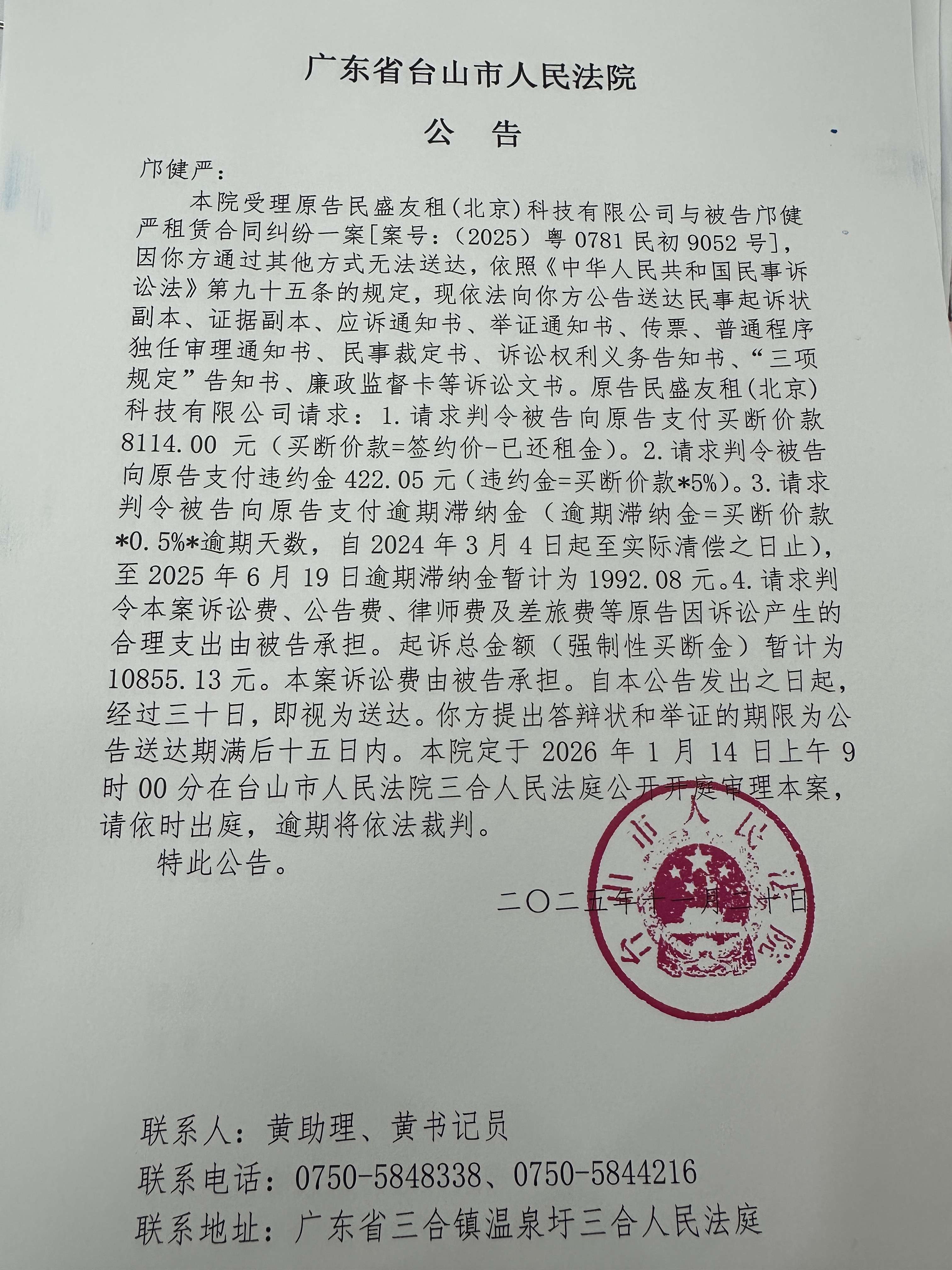 来源: 台山市人民法院 时间:2025-11-20 14:57