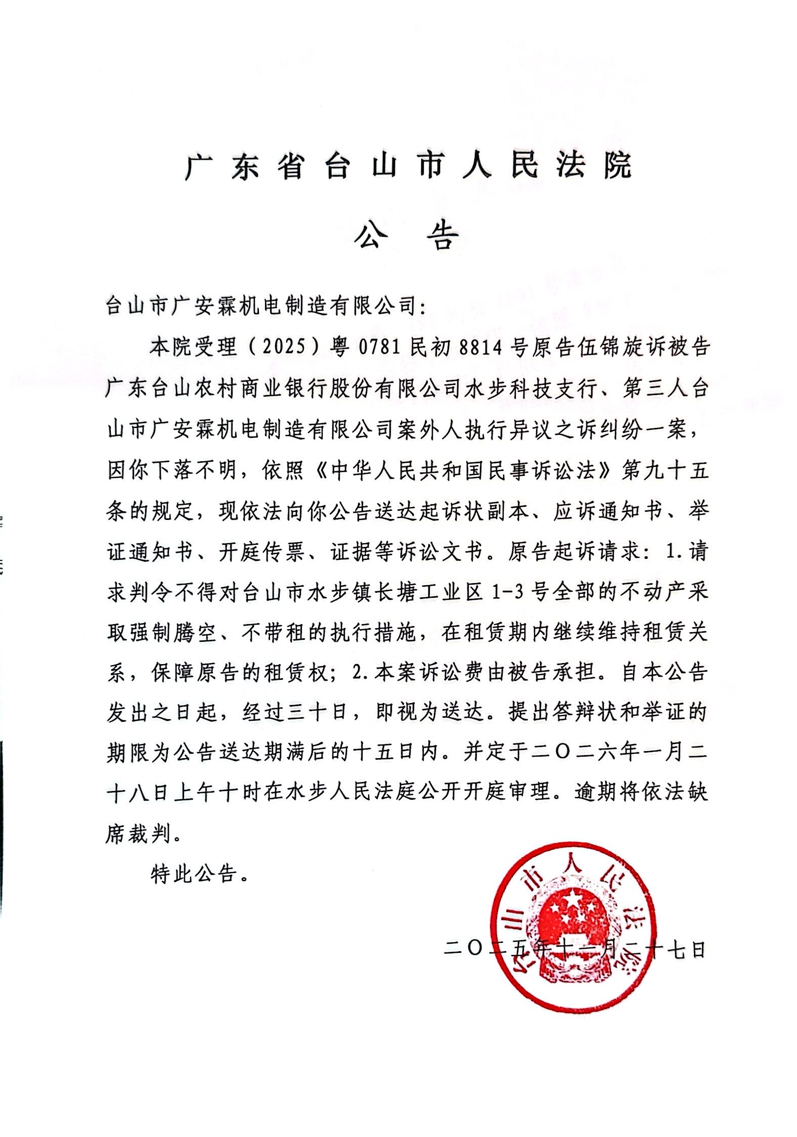 来源: 台山市人民法院 时间:2025-11-27 11:36