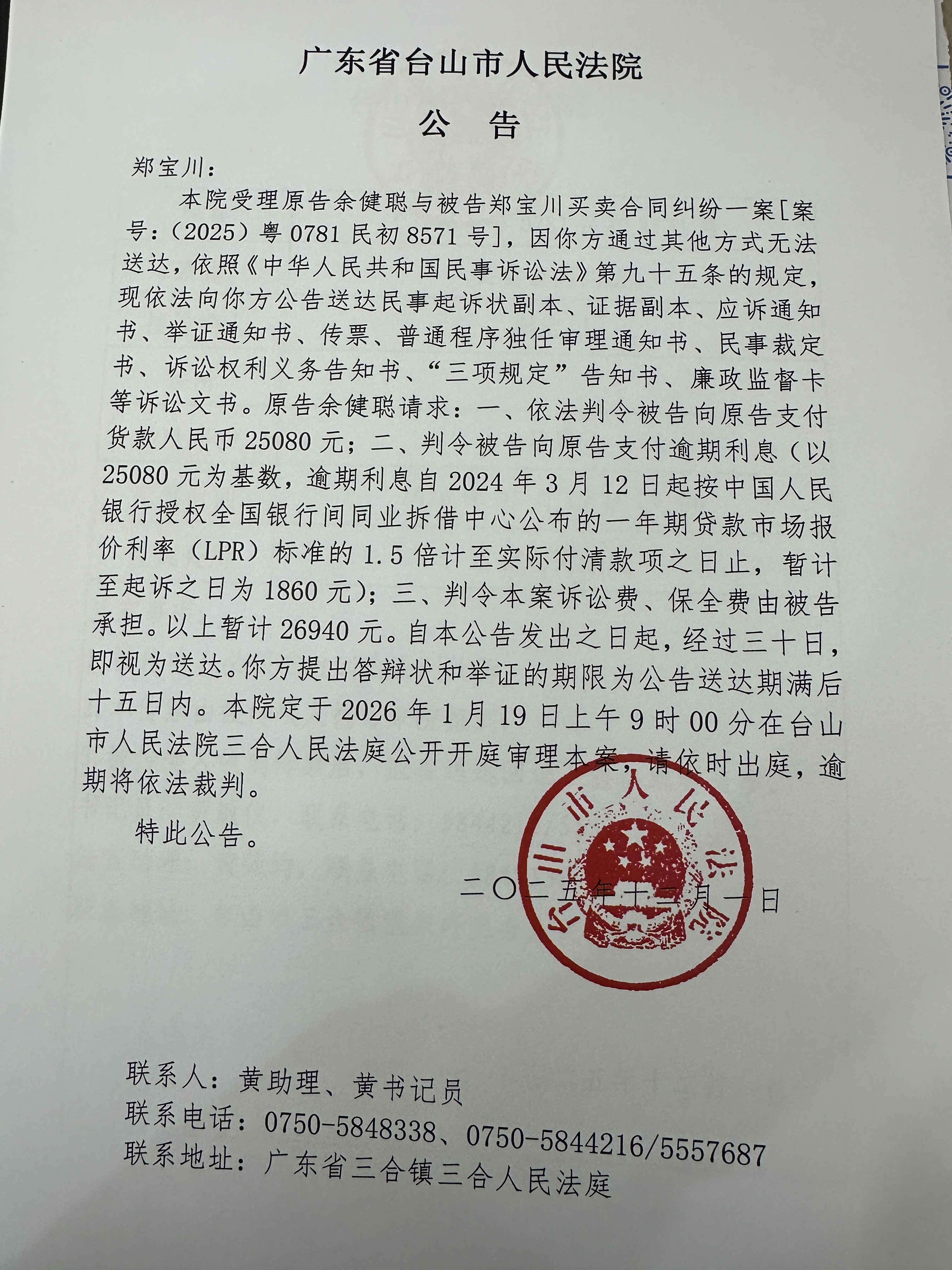 来源: 台山市人民法院 时间:2025-12-01 11:37