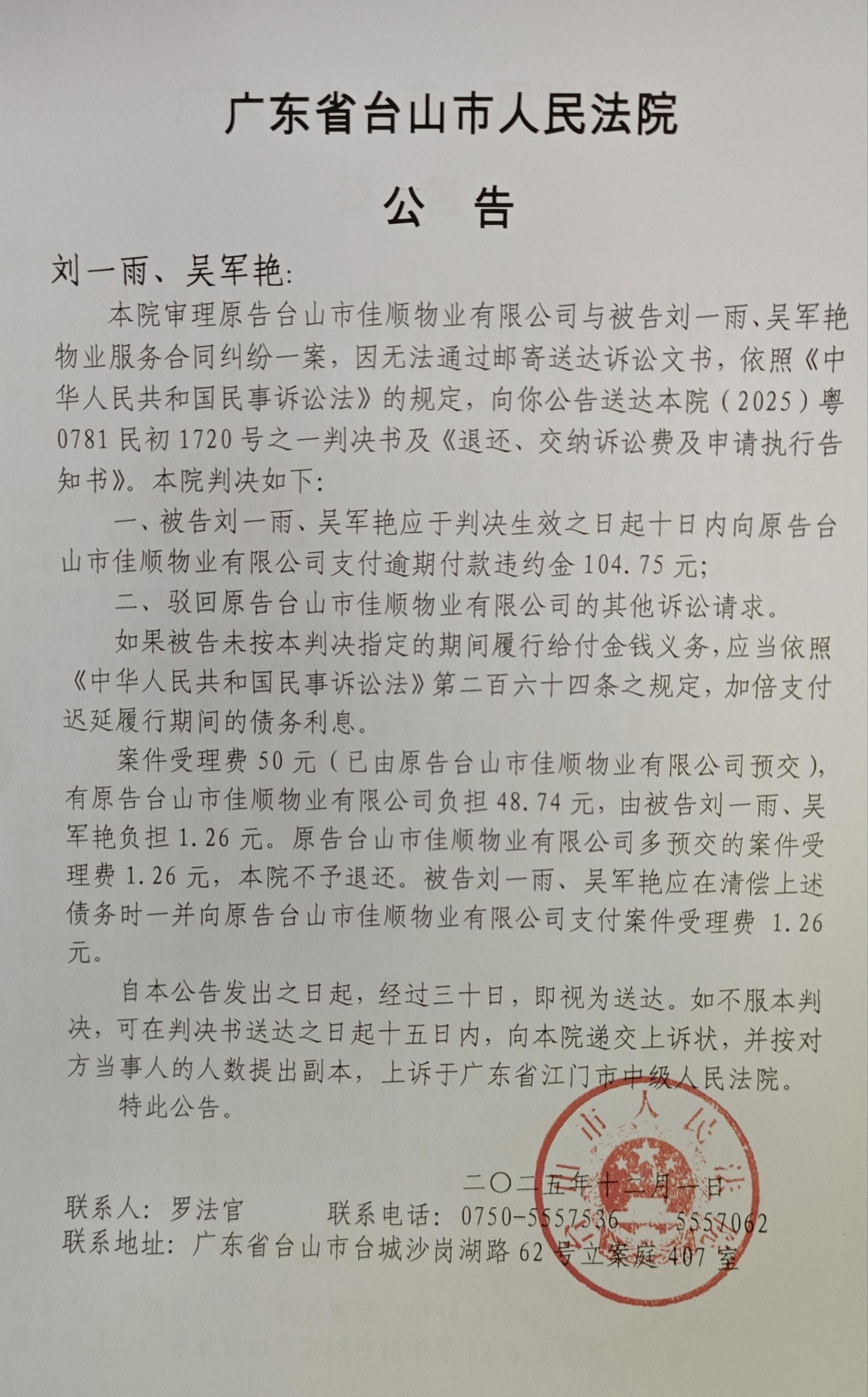 来源: 台山市人民法院 时间:2025-12-01 11:40