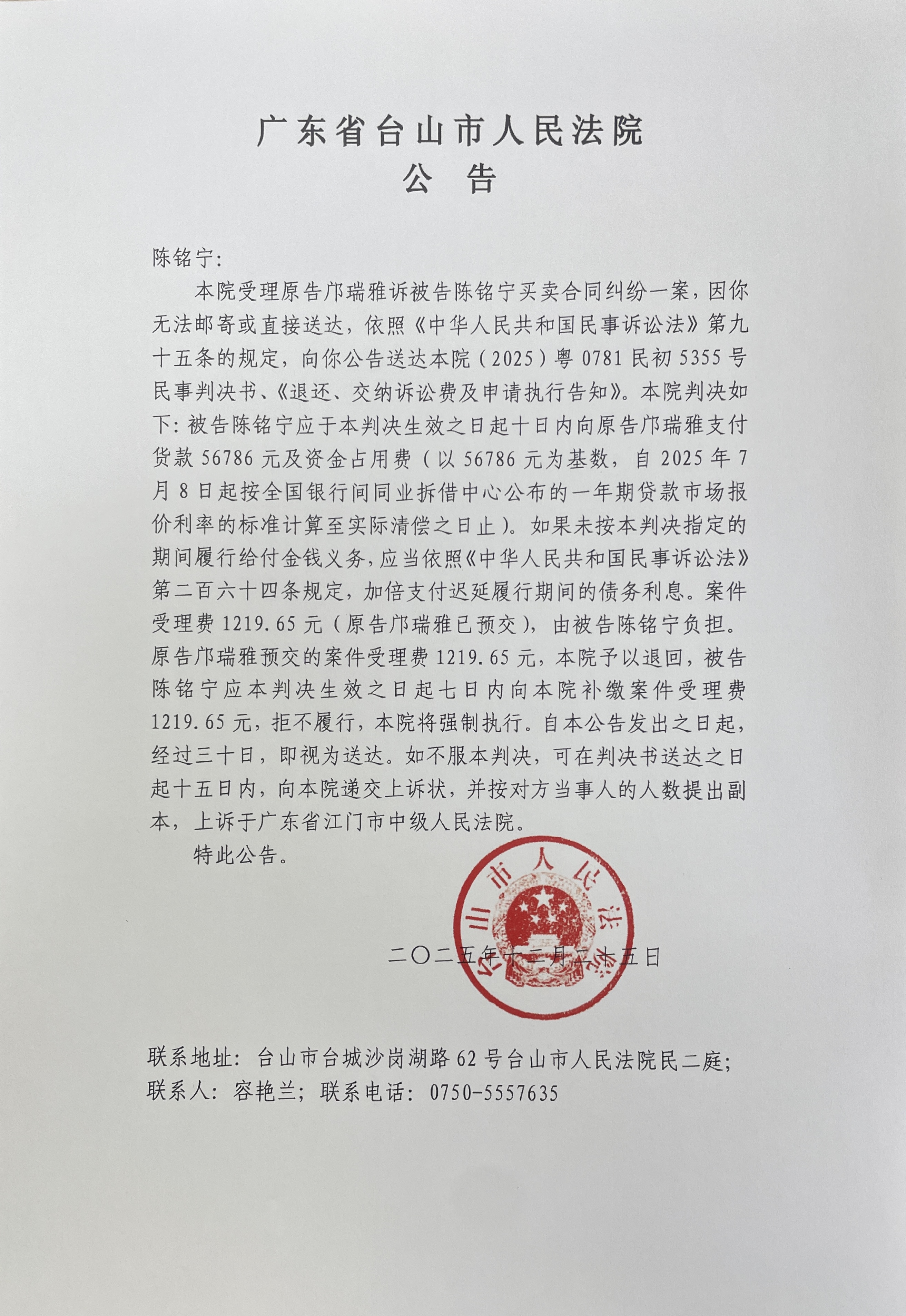 来源: 台山市人民法院 时间:2025-12-25 10:44
