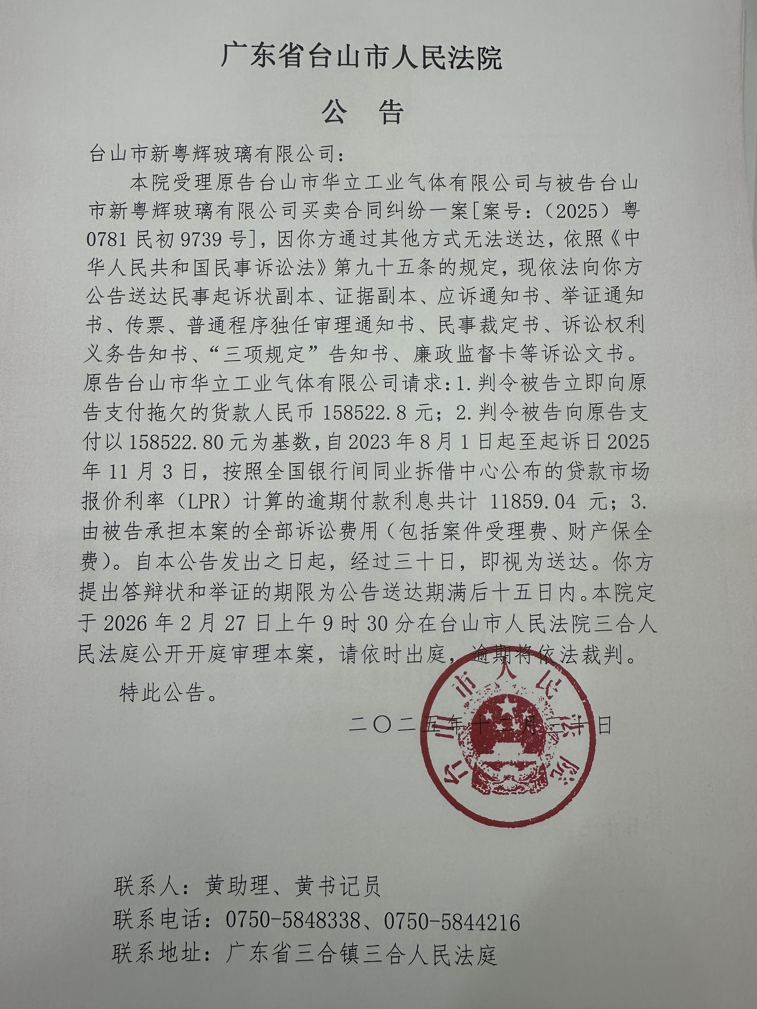 来源: 台山市人民法院 时间:2025-12-30 10:56