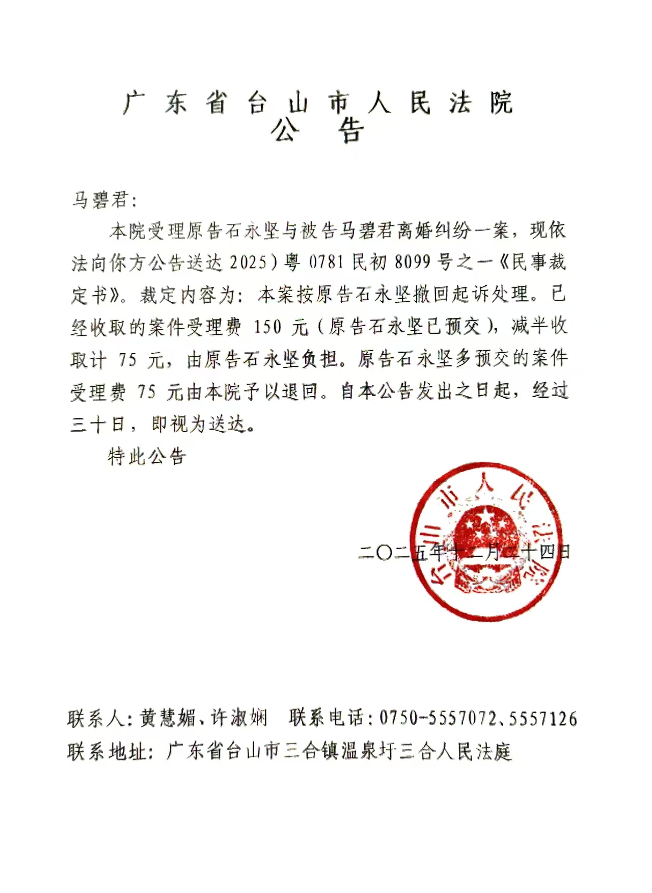 来源: 台山市人民法院 时间:2025-12-24 11:01