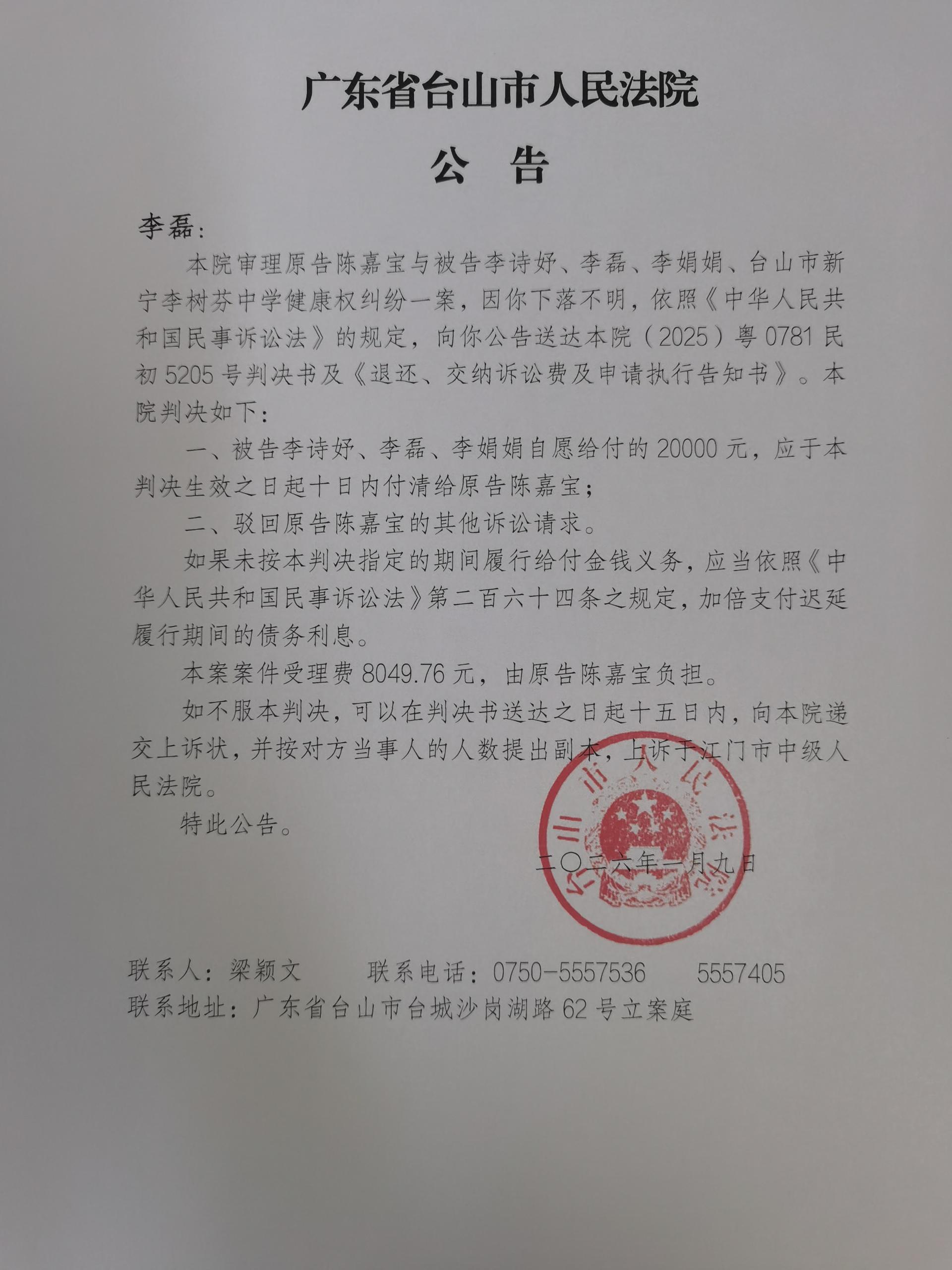 来源: 台山市人民法院 时间:2026-01-09 11:00