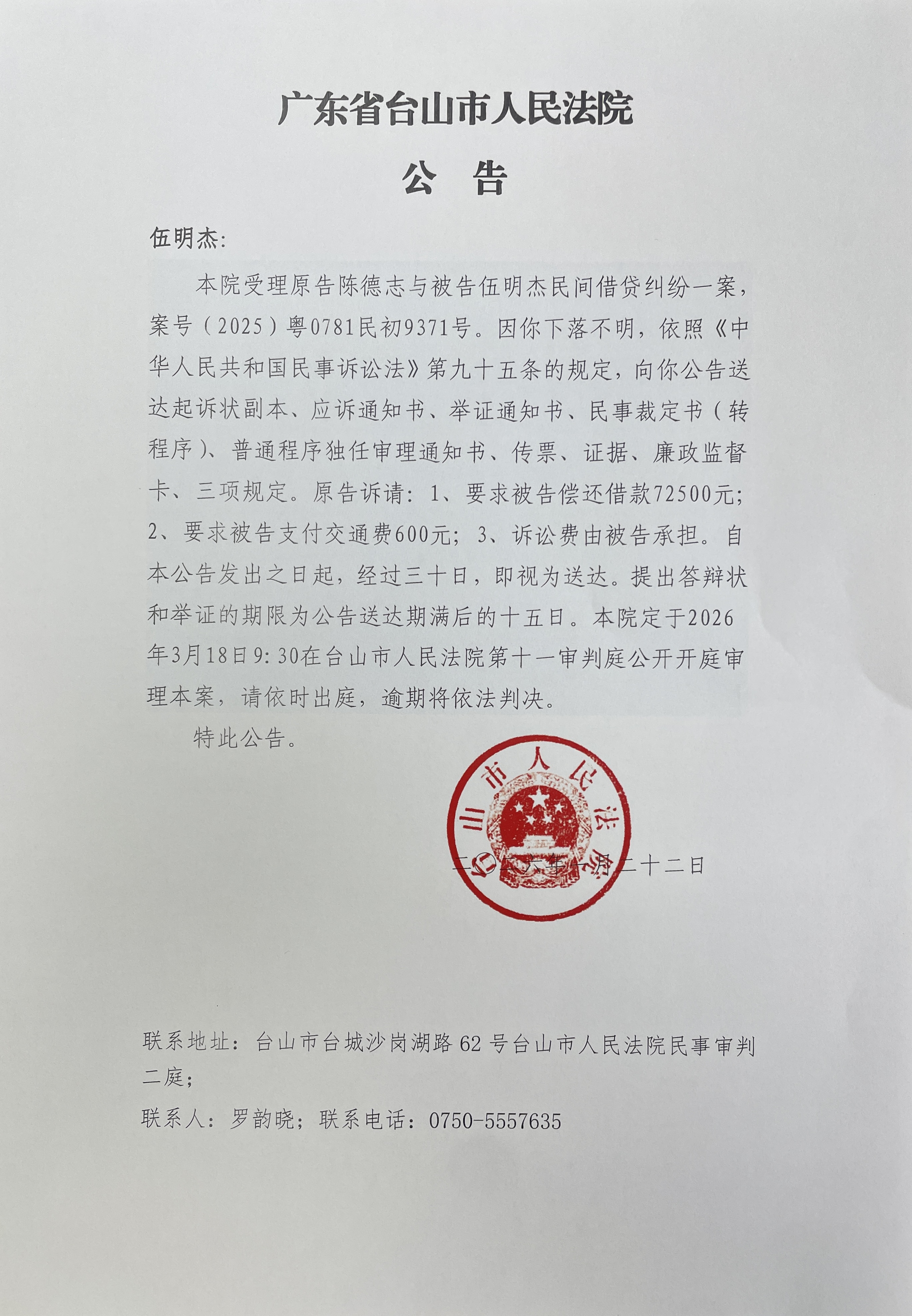 来源: 台山市人民法院 时间:2026-01-22 15:59