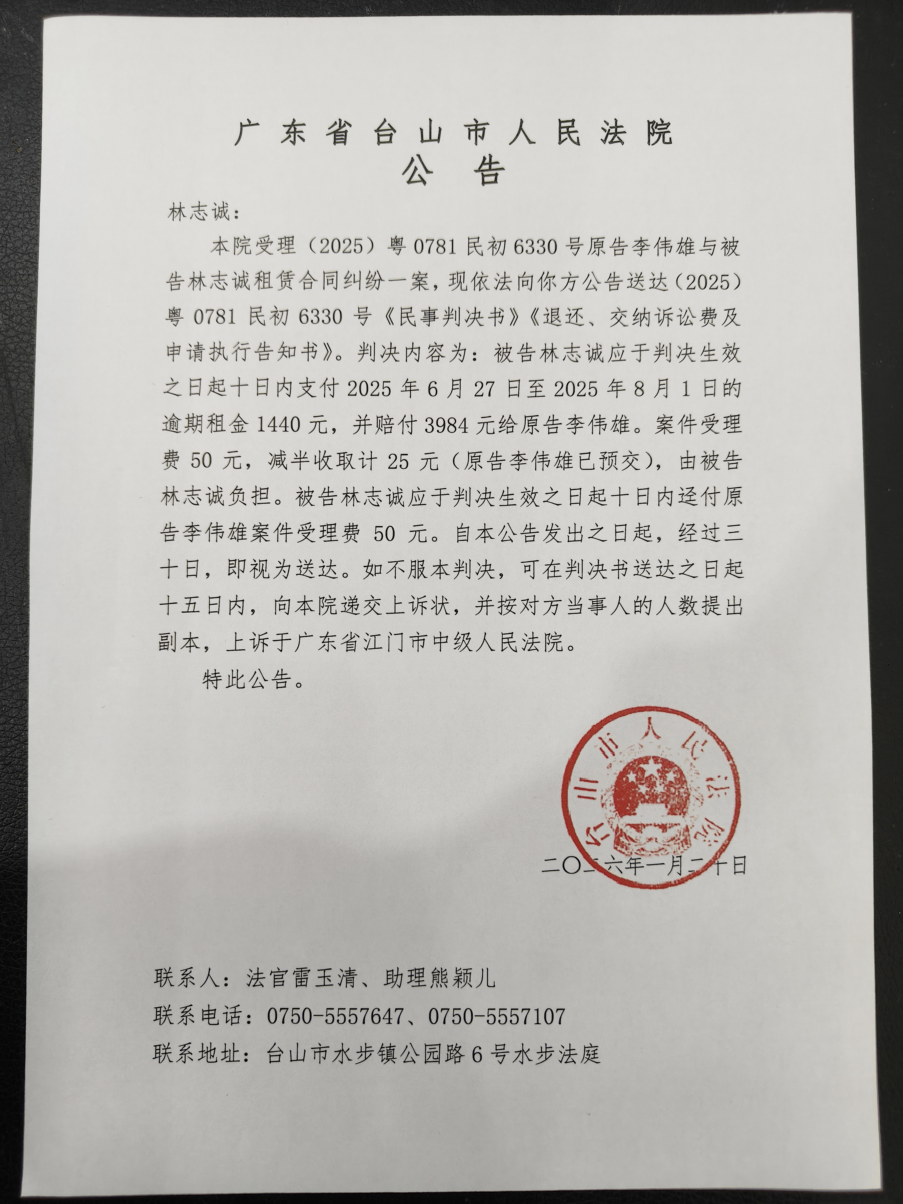 来源: 台山市人民法院 时间:2026-01-20 16:00