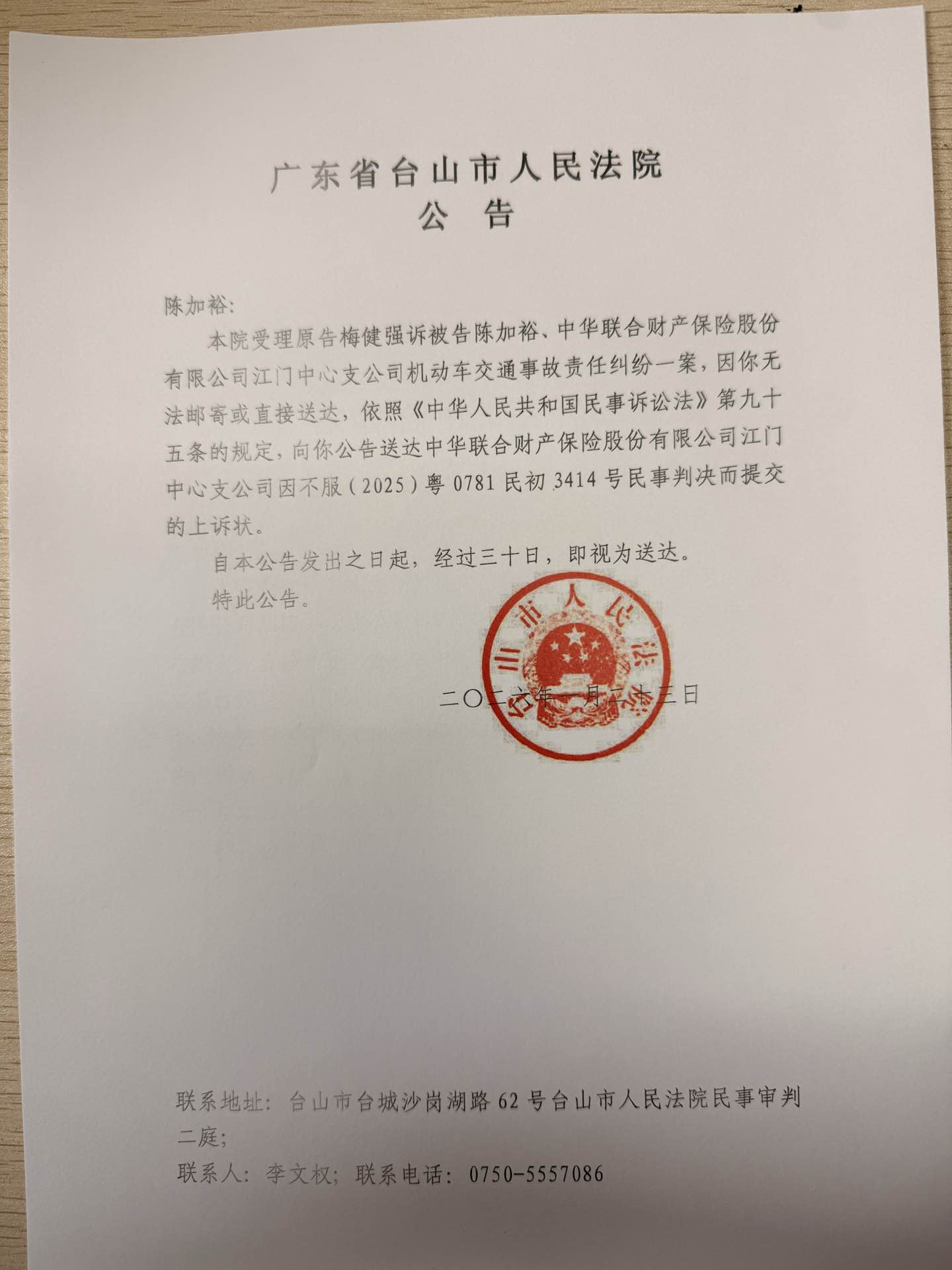 来源: 台山市人民法院 时间:2026-01-23 09:48