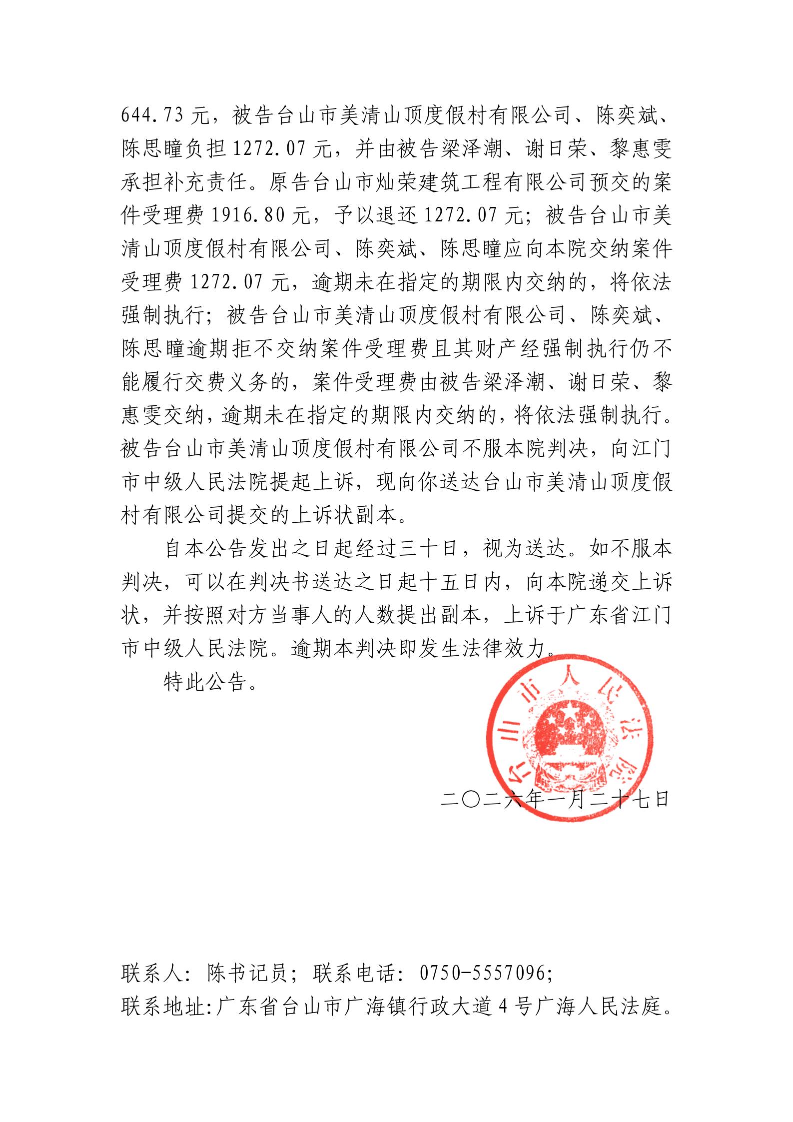 来源: 台山市人民法院 时间:2026-01-27 10:00