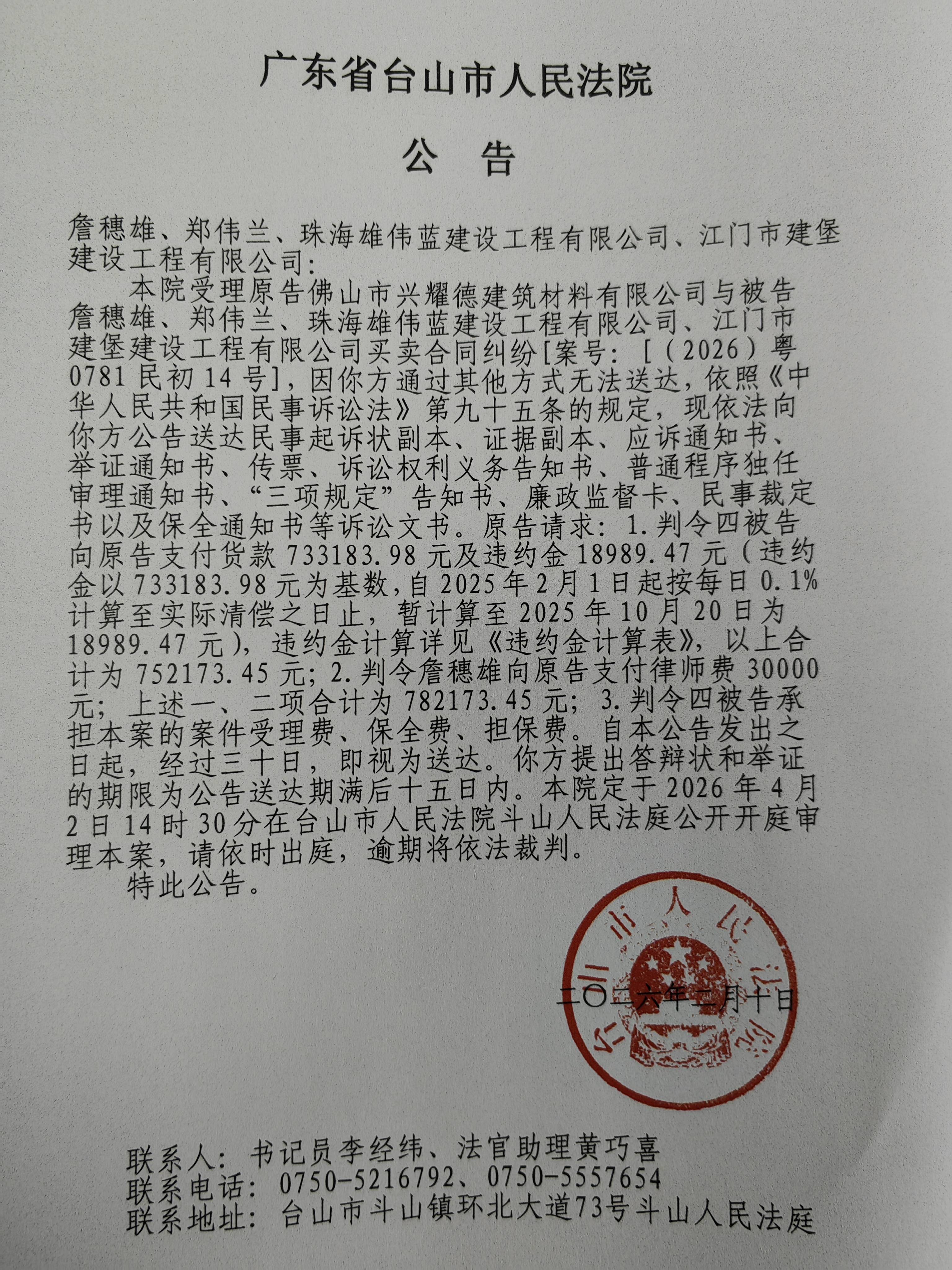 来源: 台山市人民法院 时间:2026-02-10 10:37