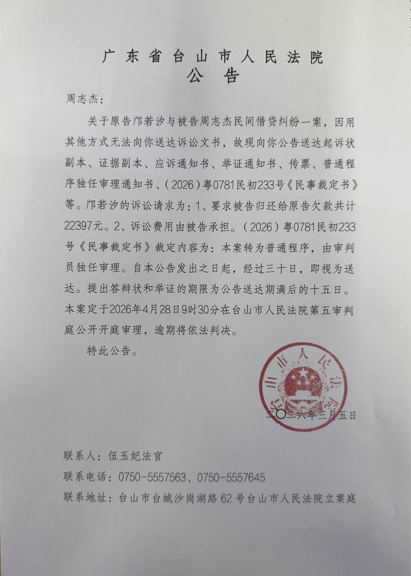 来源: 台山市人民法院 时间:2026-03-05 10:17