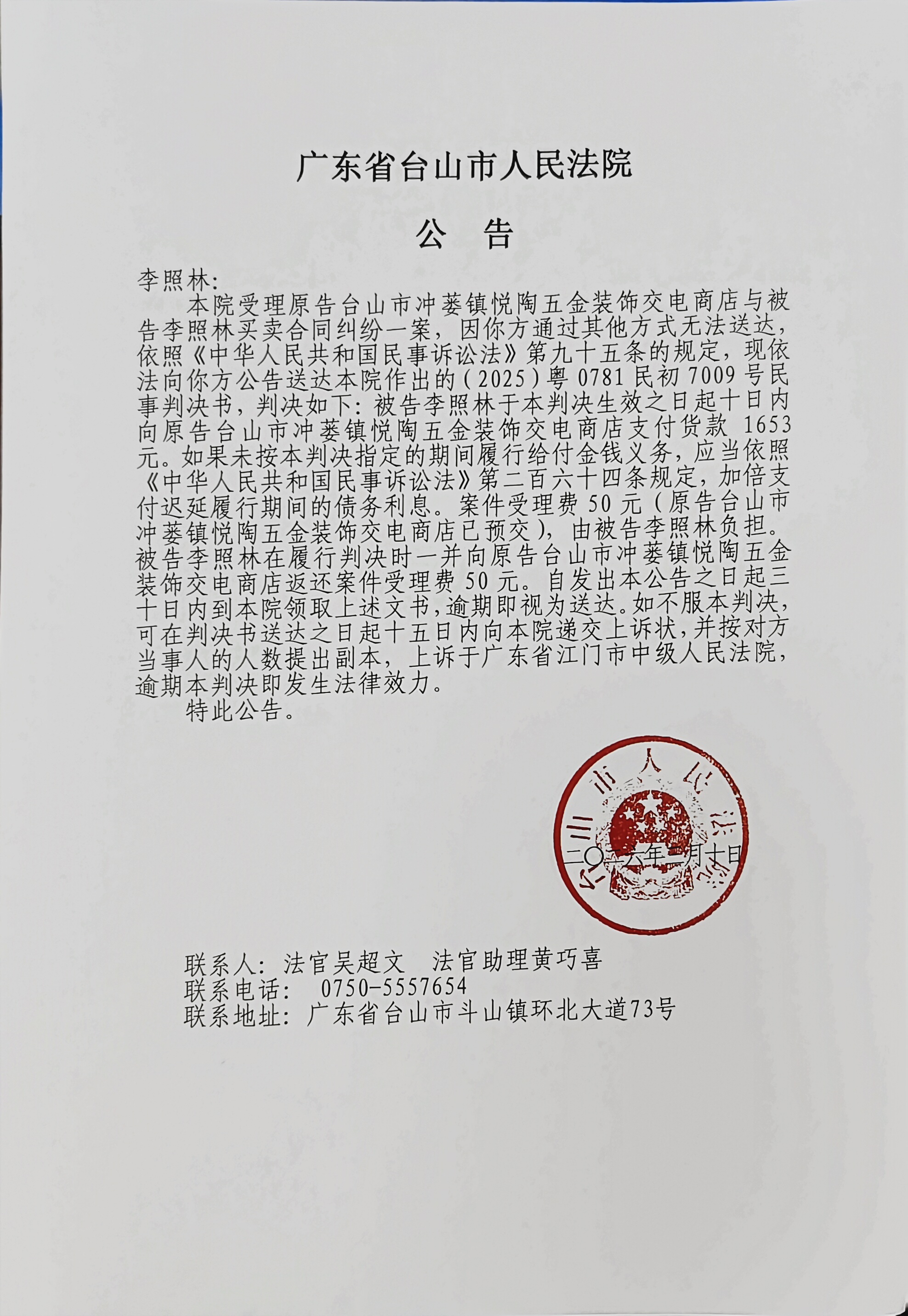 来源: 台山市人民法院 时间:2026-03-10 09:48