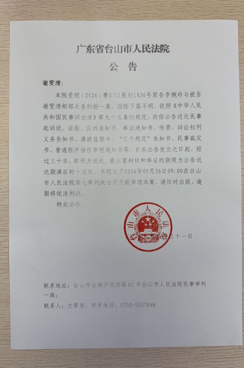 来源: 台山市人民法院 时间:2026-03-31 09:17