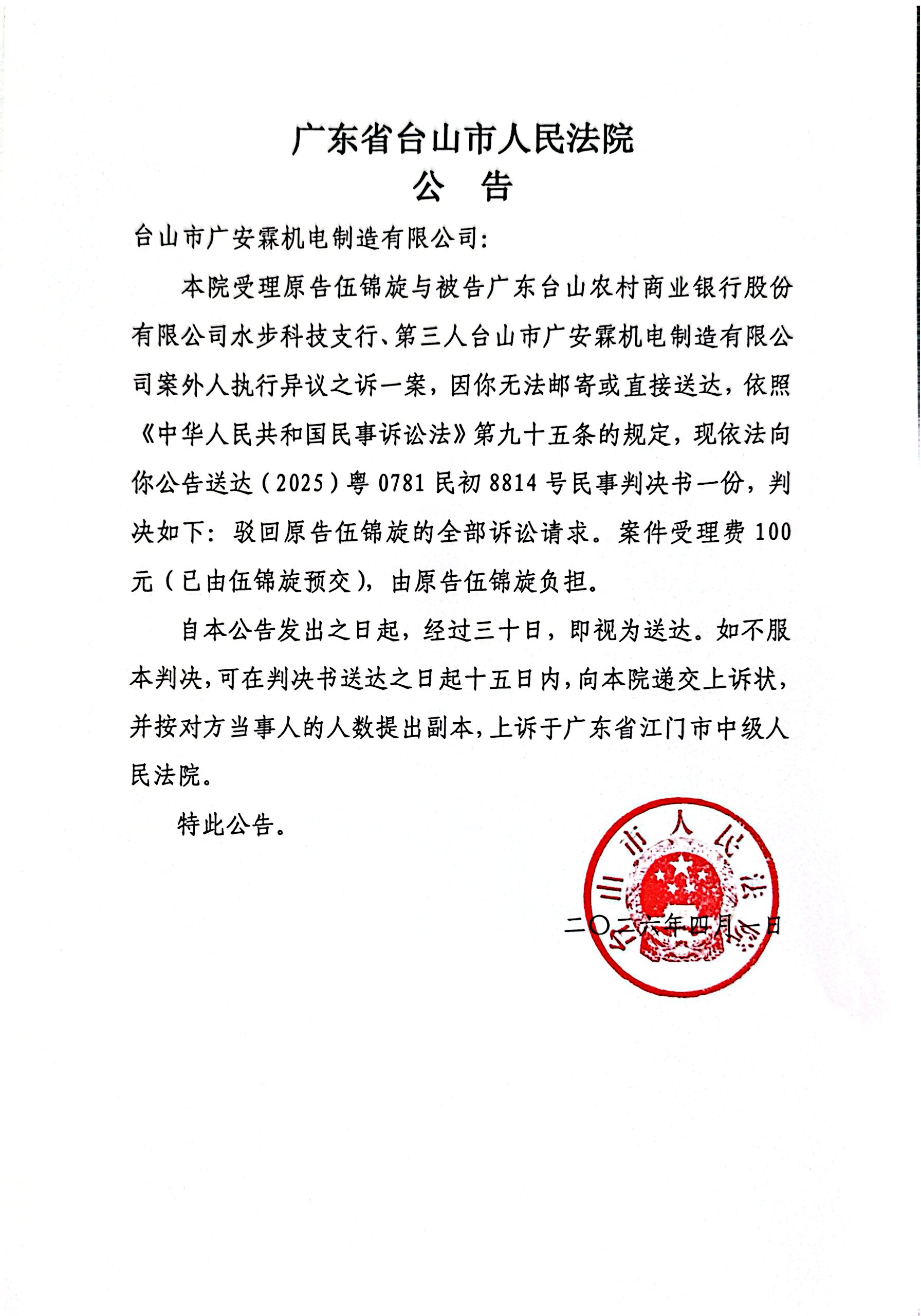 来源: 台山市人民法院 时间:2026-04-01 09:20