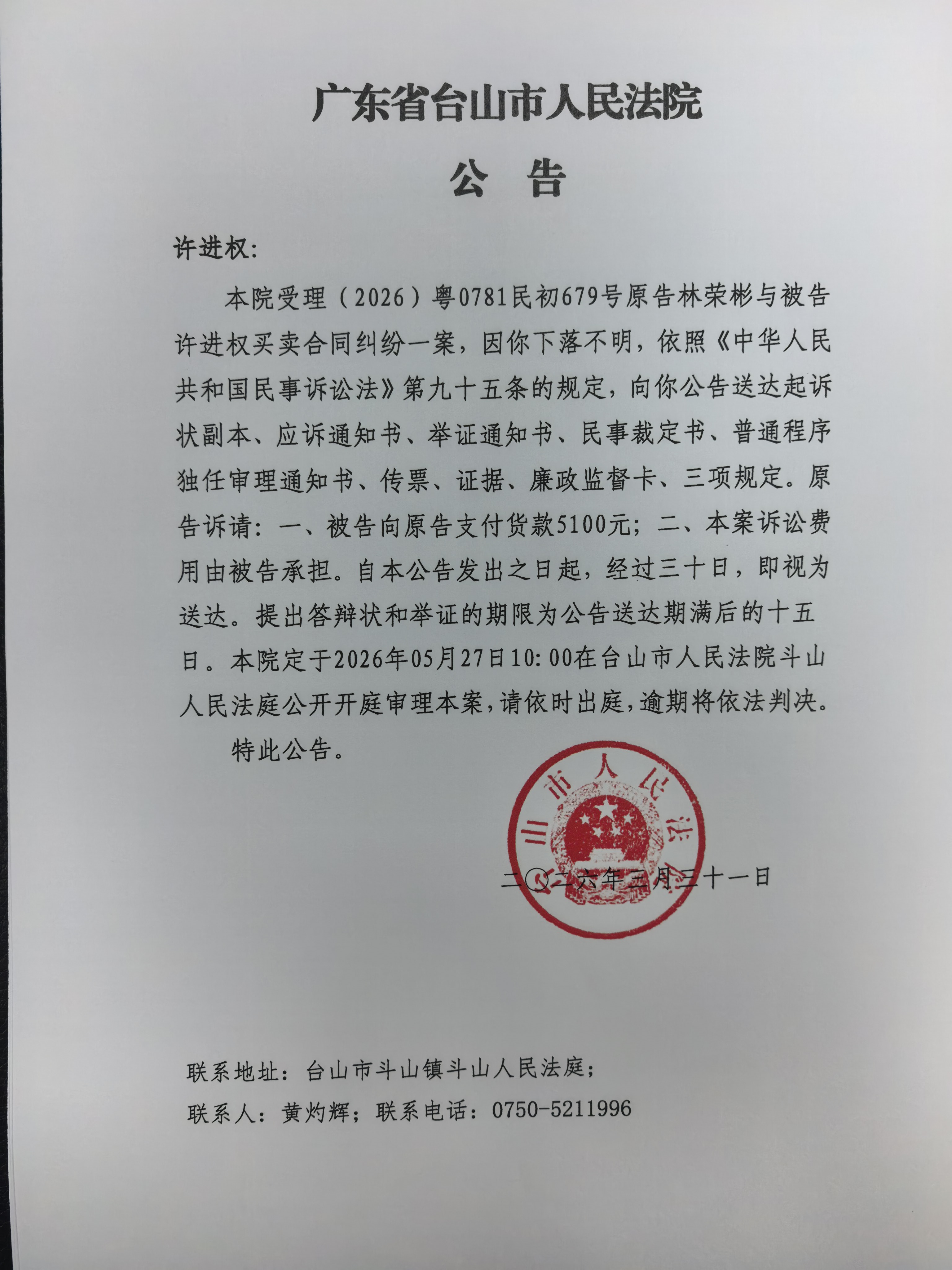 来源: 台山市人民法院 时间:2026-03-31 16:15