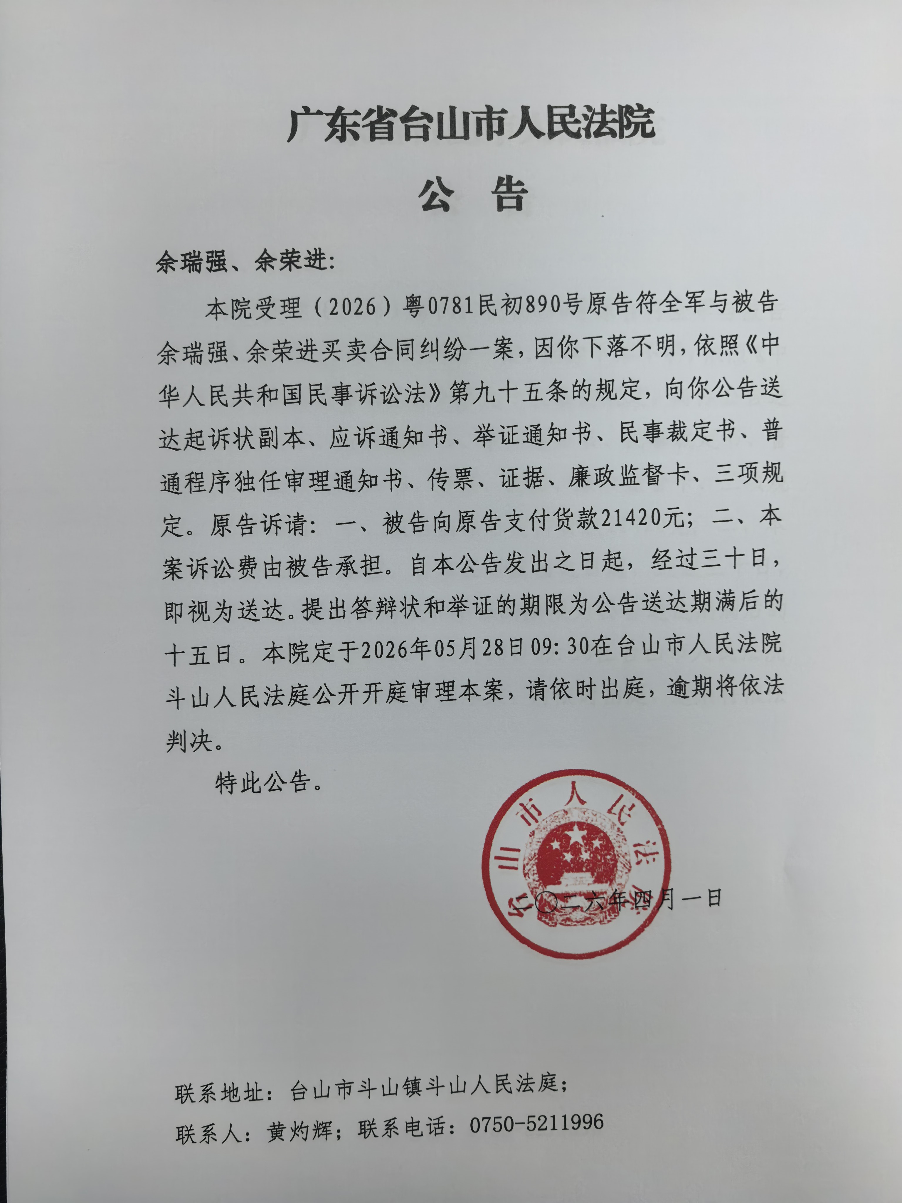 来源: 台山市人民法院 时间:2026-04-01 16:15