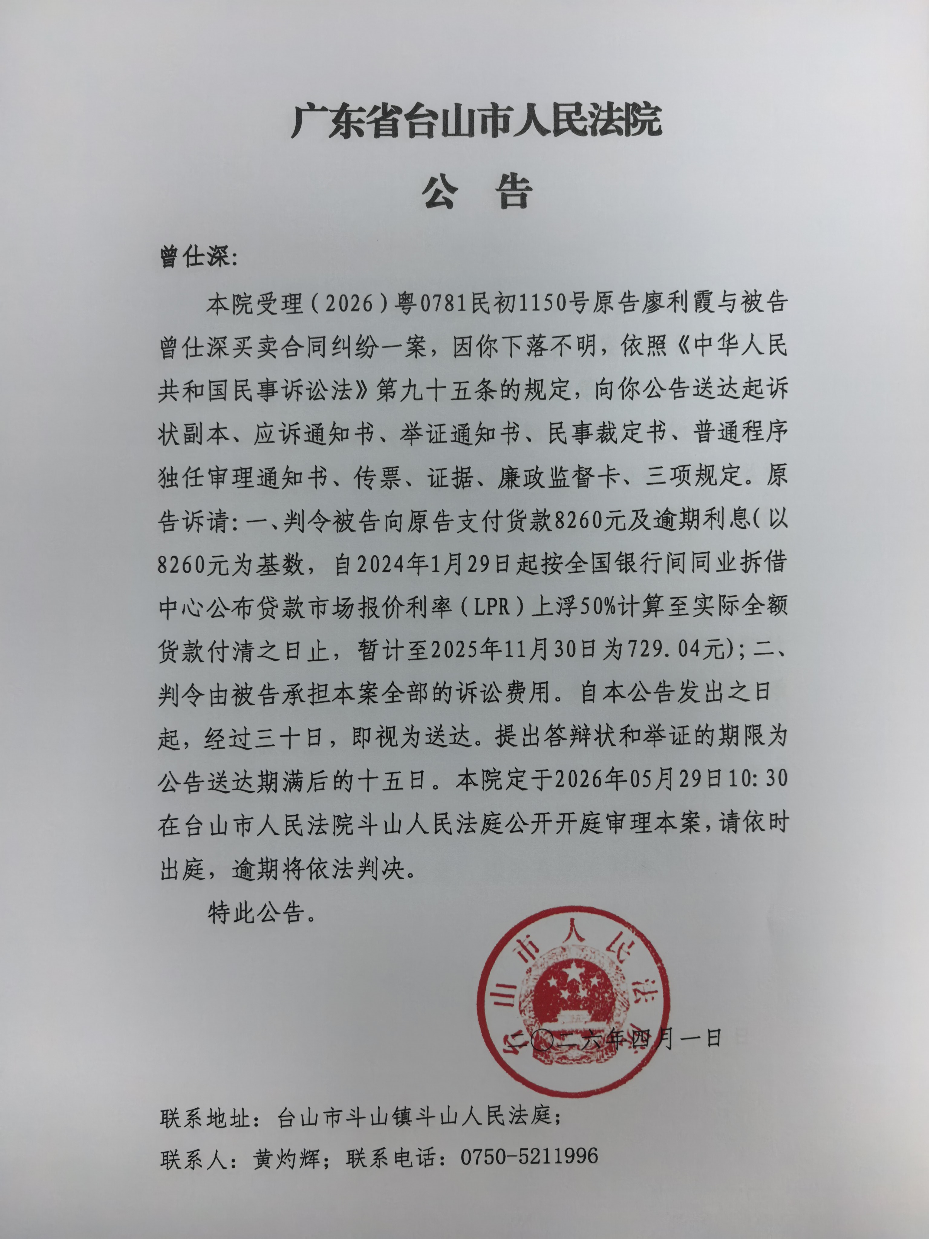 来源: 台山市人民法院 时间:2026-04-01 16:16