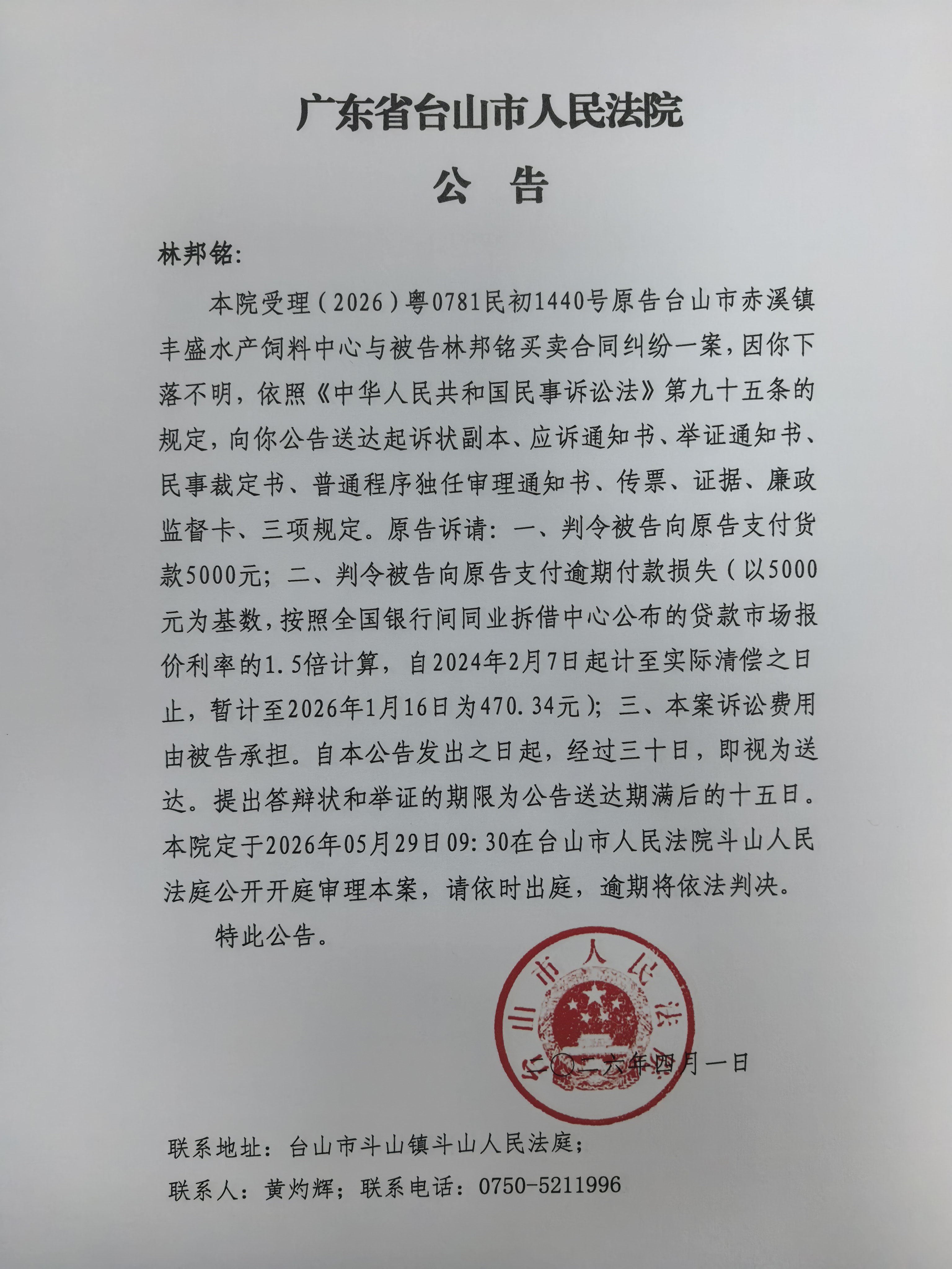 来源: 台山市人民法院 时间:2026-04-01 16:45