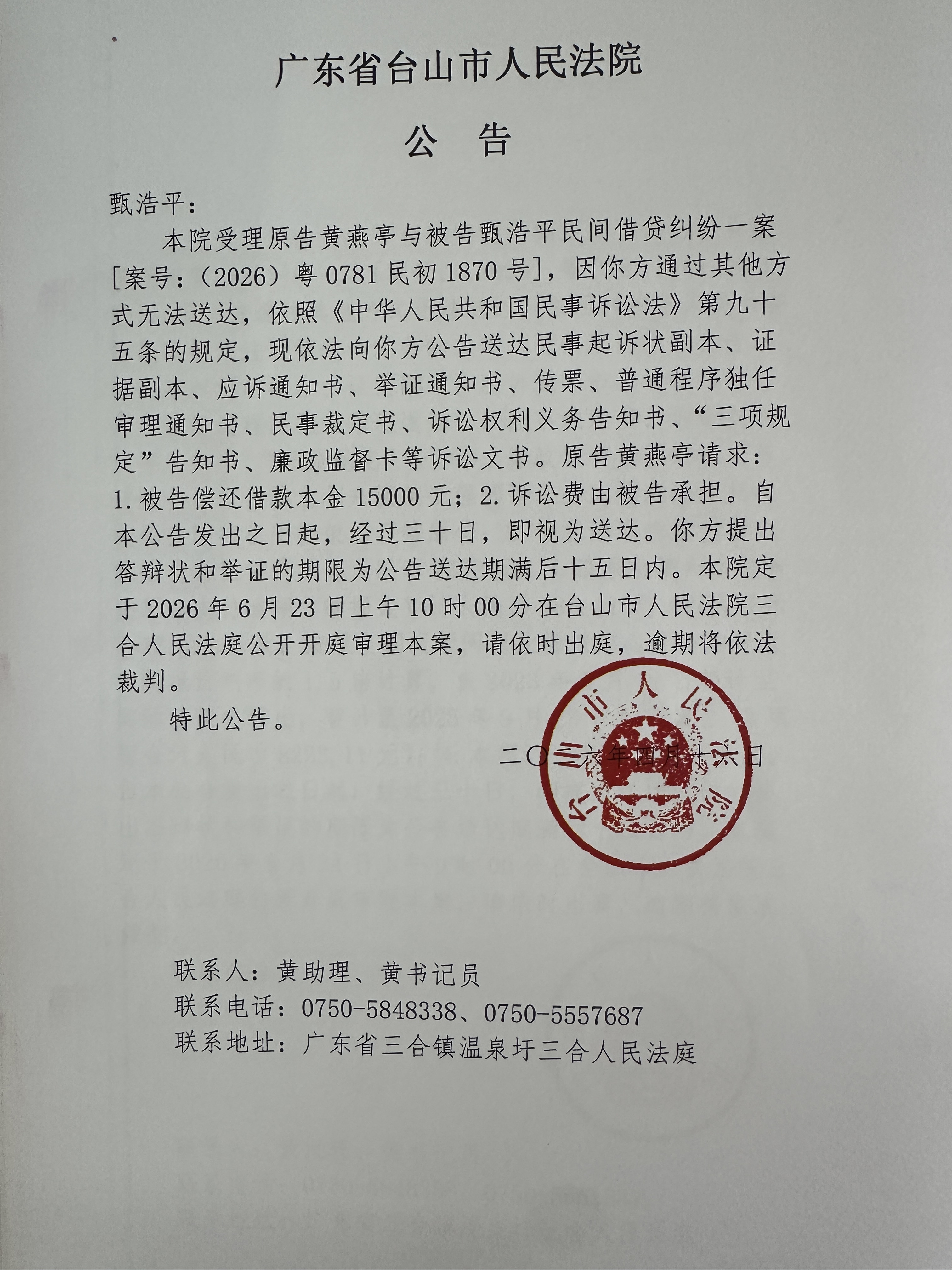 来源: 台山市人民法院 时间:2026-04-16 10:21