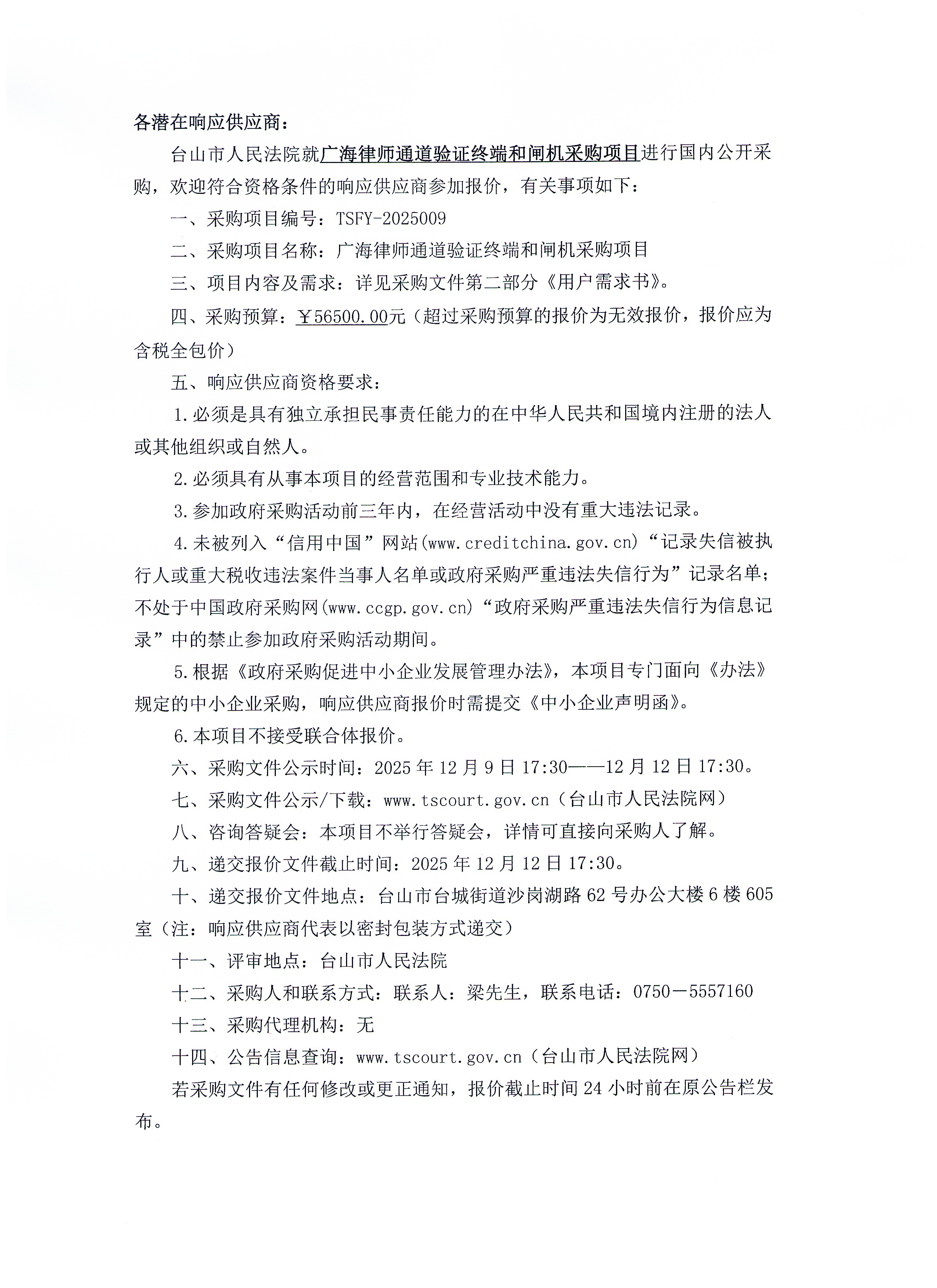 广海律师通道验证终端和闸机采购项目采购文件.docx