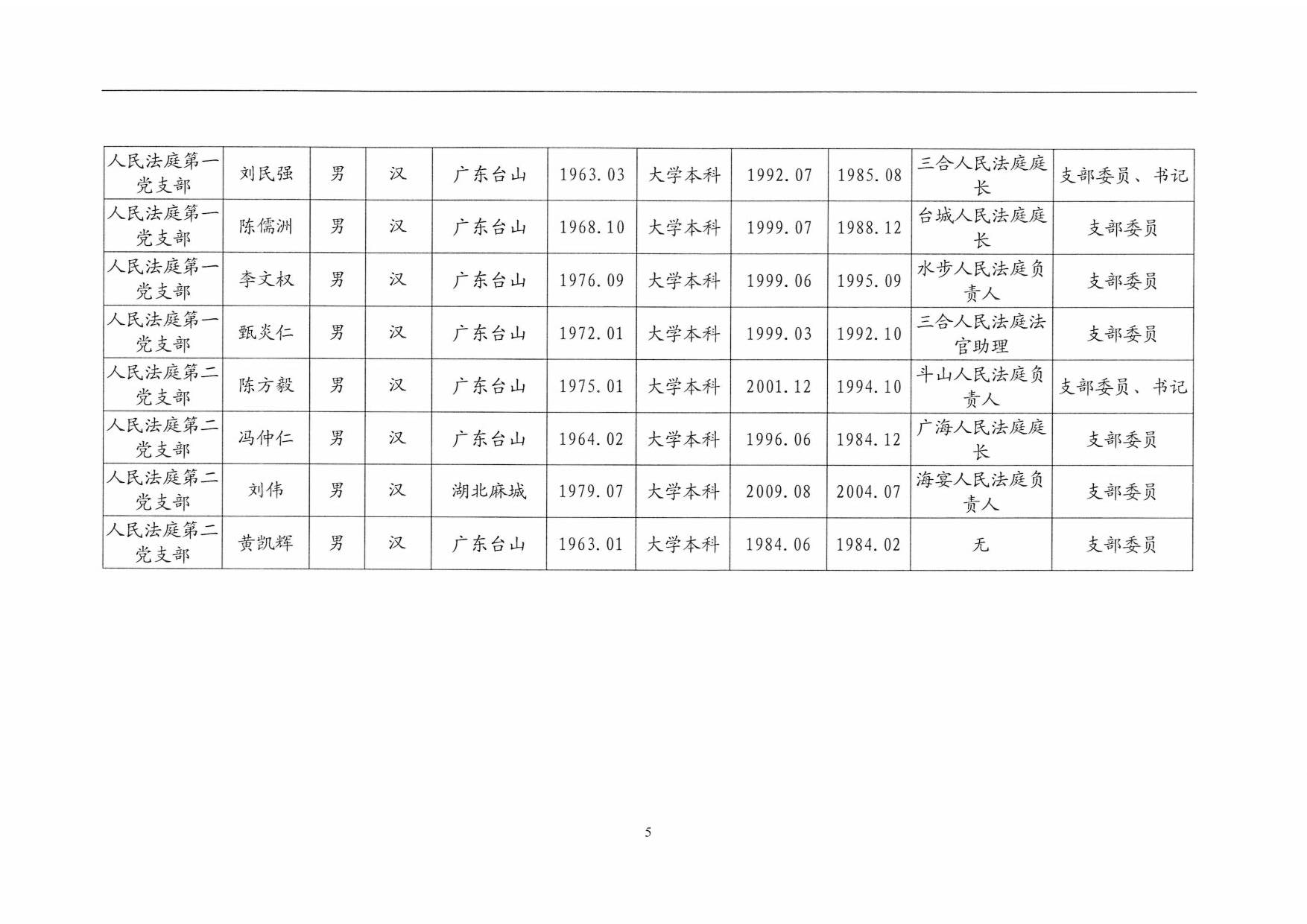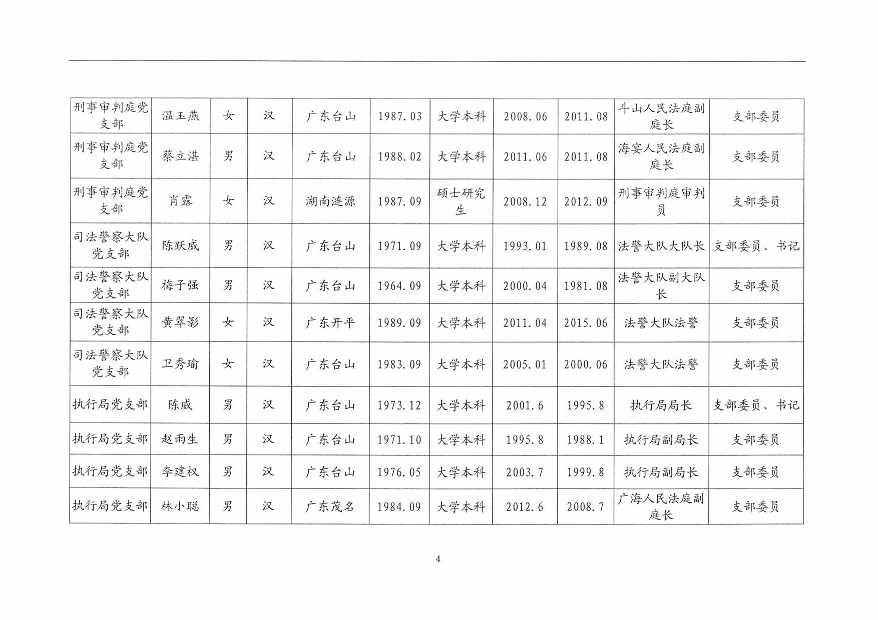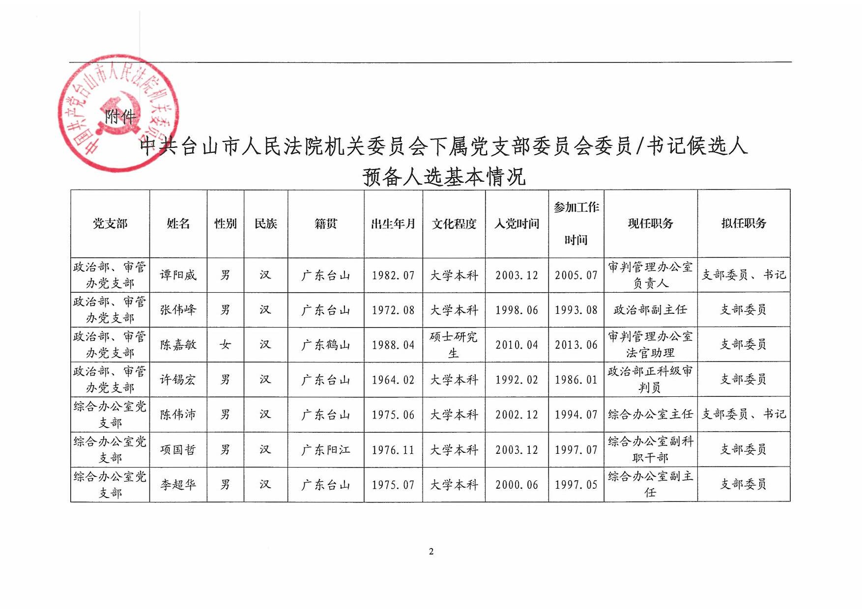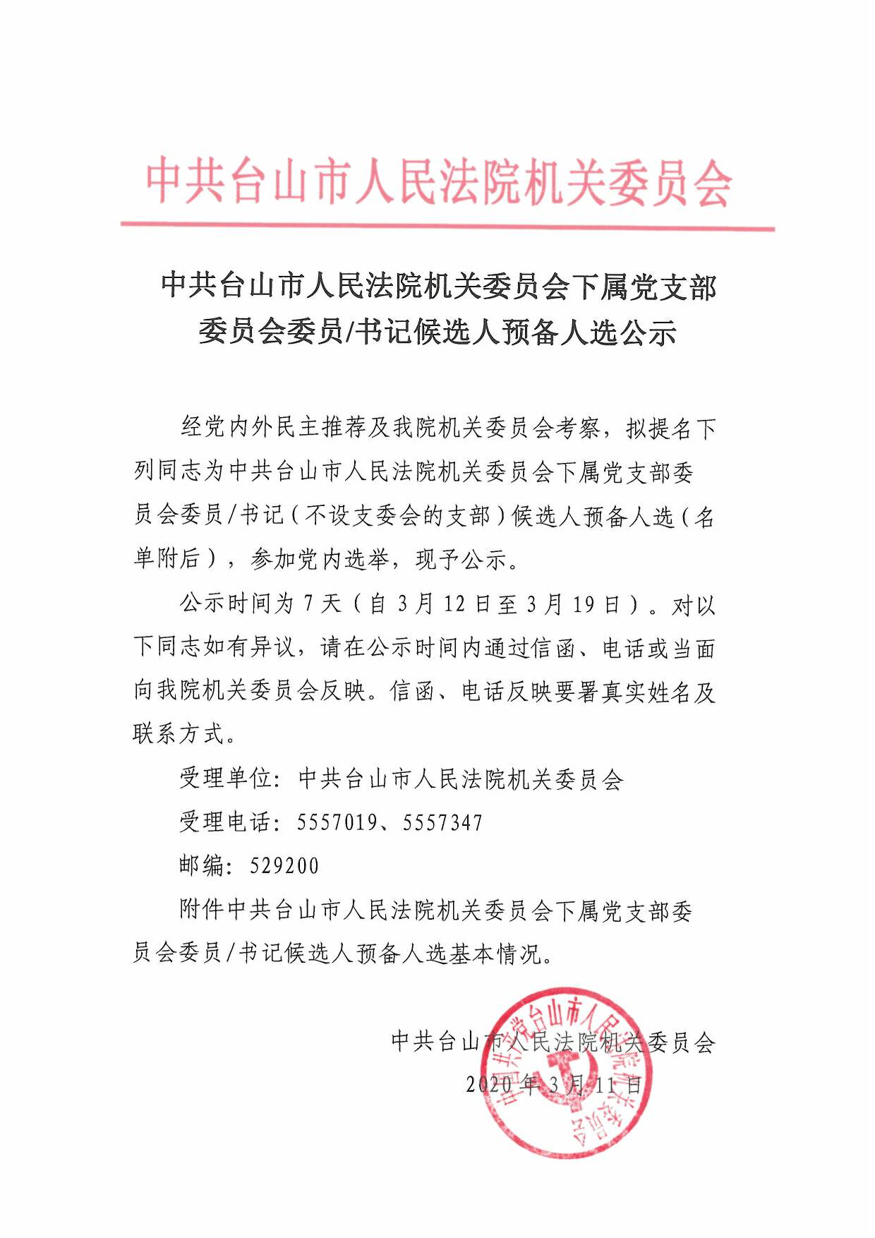 中共台山市人民法院机关委员会下属党支部委员会委员书记候选人预备人选公示