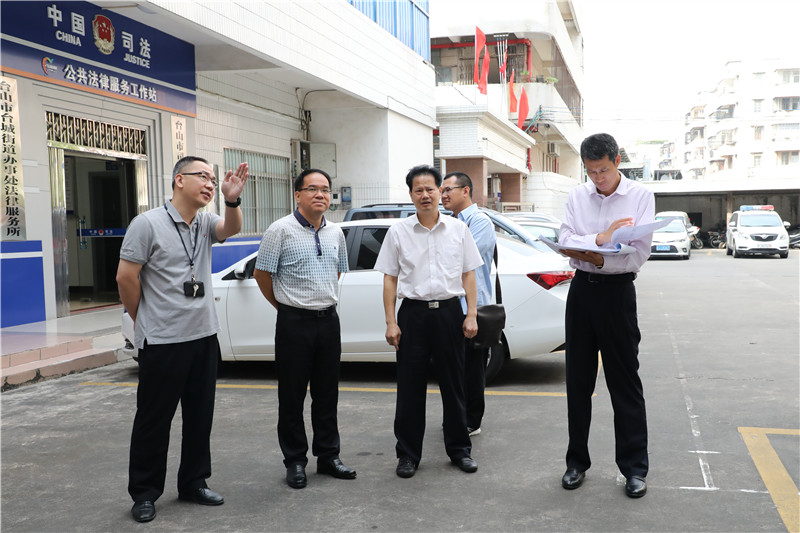 工作组一行视察了台城法庭,详细查看了台城法庭外观及法庭内部结构布局,并根据设计图纸逐一指导台城法庭审判庭、调解室、办公室、休息室改建工作。