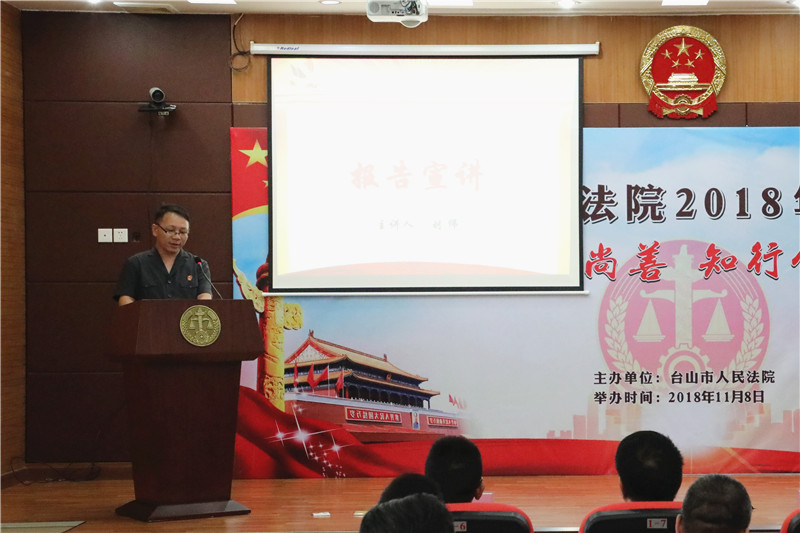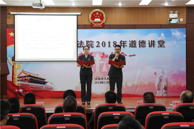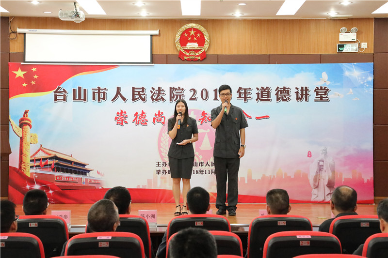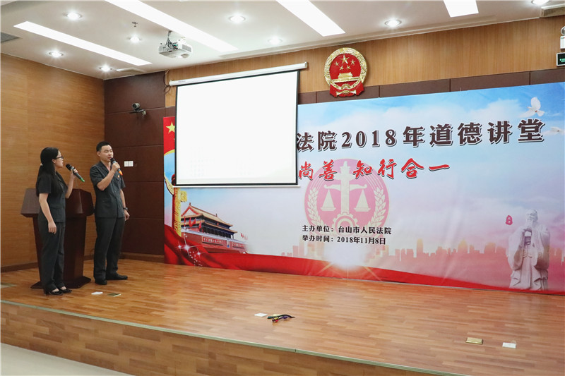 为进一步加强法院精神文明建设,提升干警思想道德修养和文明素质。11月8日下午,我院举办一场以“崇德尚善、知行合一”为主题的道德讲堂活动。活动分为唱歌曲、学模范、诵经典、报告宣讲、谈感悟五个环节。院党组成员、干警、在编职工、合同制书记员以及党员参加了活动。
